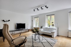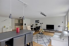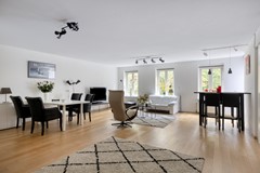 Bij binnenkomst in de woonkamer valt meteen de royale leefruimte op. De woonkamer is bijzonder licht dankzij de brede raampartijen en de open indeling die ruimte en rust ademt. Het woongedeelte biedt voldoende plek voor meerdere zit- en eethoeken en is voorzien van airconditioning.