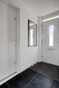 Via de verzorgde voortuin en de eigen oprit bereikt u de entree van de woning. Hier is ruimte genoeg om meerdere auto’s te parkeren, terwijl er in de directe omgeving eveneens voldoende parkeergelegenheid is. Eenmaal binnen komt u in de ruime hal, die toegang biedt tot het toilet, de woonkamer, de garage en de trap naar de eerste verdieping. De nette afwerking en de lichte uitstraling zorgen direct voor een prettige eerste indruk.