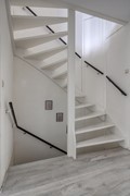De vaste trap vanuit de hal brengt u naar de eerste verdieping, waar drie lichte en ruime slaapkamers en de badkamer te vinden zijn. De overloop verbindt de vertrekken op een prettige manier, waardoor deze verdieping een logische en praktische indeling heeft.