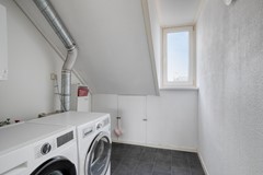 Een vaste trap leidt u naar de ruime tweede verdieping, waar zich nog eens twee slaapkamers en een wasruimte bevinden. Dankzij de ligging onder de kap (met dakkapellen) zijn de kamers sfeervol en hebben ze een karakteristieke uitstraling. Beide slaapkamers bieden voldoende ruimte voor een bed, bureau en kast, en kunnen naar wens worden ingericht als logeer-, werk- of tienerkamer. De wasruimte biedt praktische opslagruimte en herbergt tevens de aansluitingen voor witgoed.