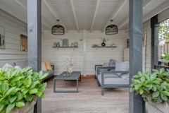 Achter de woning ligt een riante en zonnige achtertuin, die grotendeels is bestraat maar ook voorzien is van fraai groen. Dankzij de gunstige ligging geniet u hier van veel zonuren en volop privacy. Er is meer dan genoeg ruimte voor een loungehoek, eettafel of zomerse barbecue. Achterin de tuin bevindt zich een overkapping en een berging, ideaal voor tuinmeubilair of fietsen. Hier ervaart u het echte buitenleven, midden in de woonwijk.