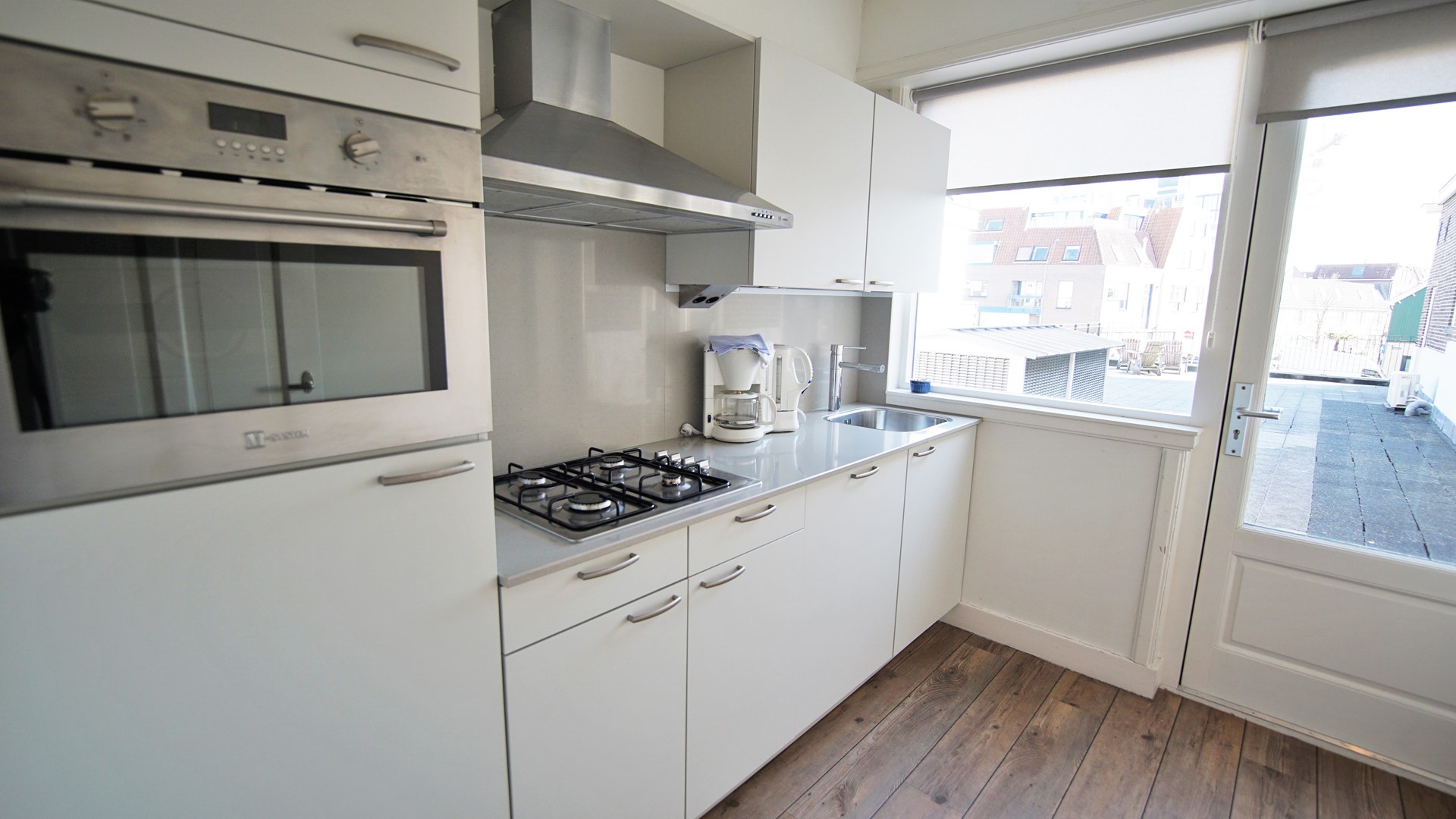 The apartments can be entered at the front near the terrace of restaurant Bikini Bikini. Via the joint staircase to the first floor you enter the furnished apartment Haven 3A, which has an area of ​​53 m2.