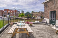 At the end of the hall is the bedroom which, like the kitchen, provides access to the communal roof terrace. This is located at the rear of the building, where you can enjoy the pleasant waterways of the Leidse Singels when the weather is nice.