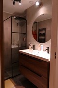 Step into the sleekly finished living room. Thanks to the modern decor—think contemporary furniture, beautiful materials, subtle colors, and plenty of light—you'll immediately feel at ease. The semi-open kitchen is truly stunning: luxurious, fully equipped, and with all the necessary built-in appliances. The bathroom is just as stylish: beautifully tiled, featuring a spacious shower and a modern vanity. Shower in style here!