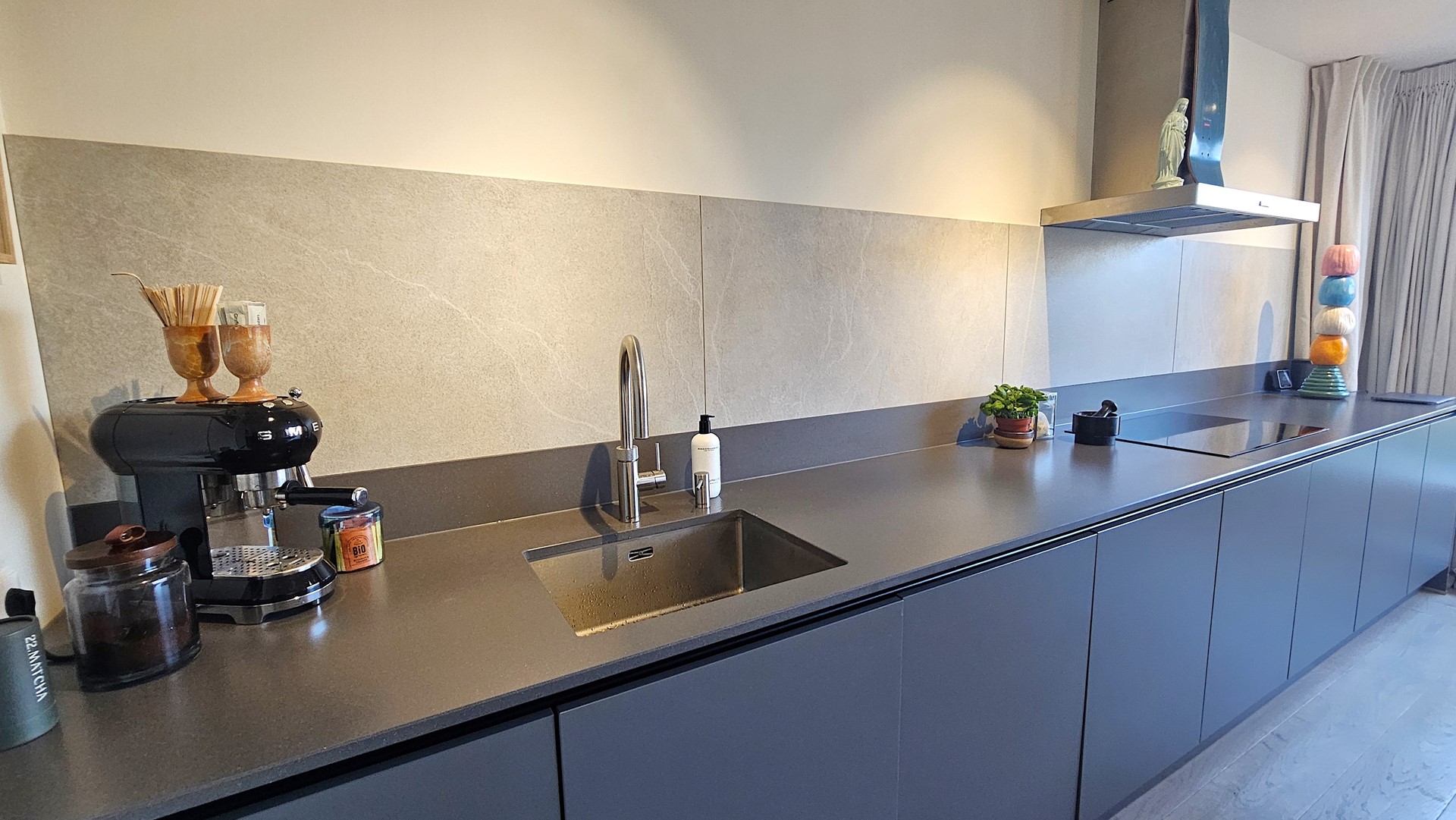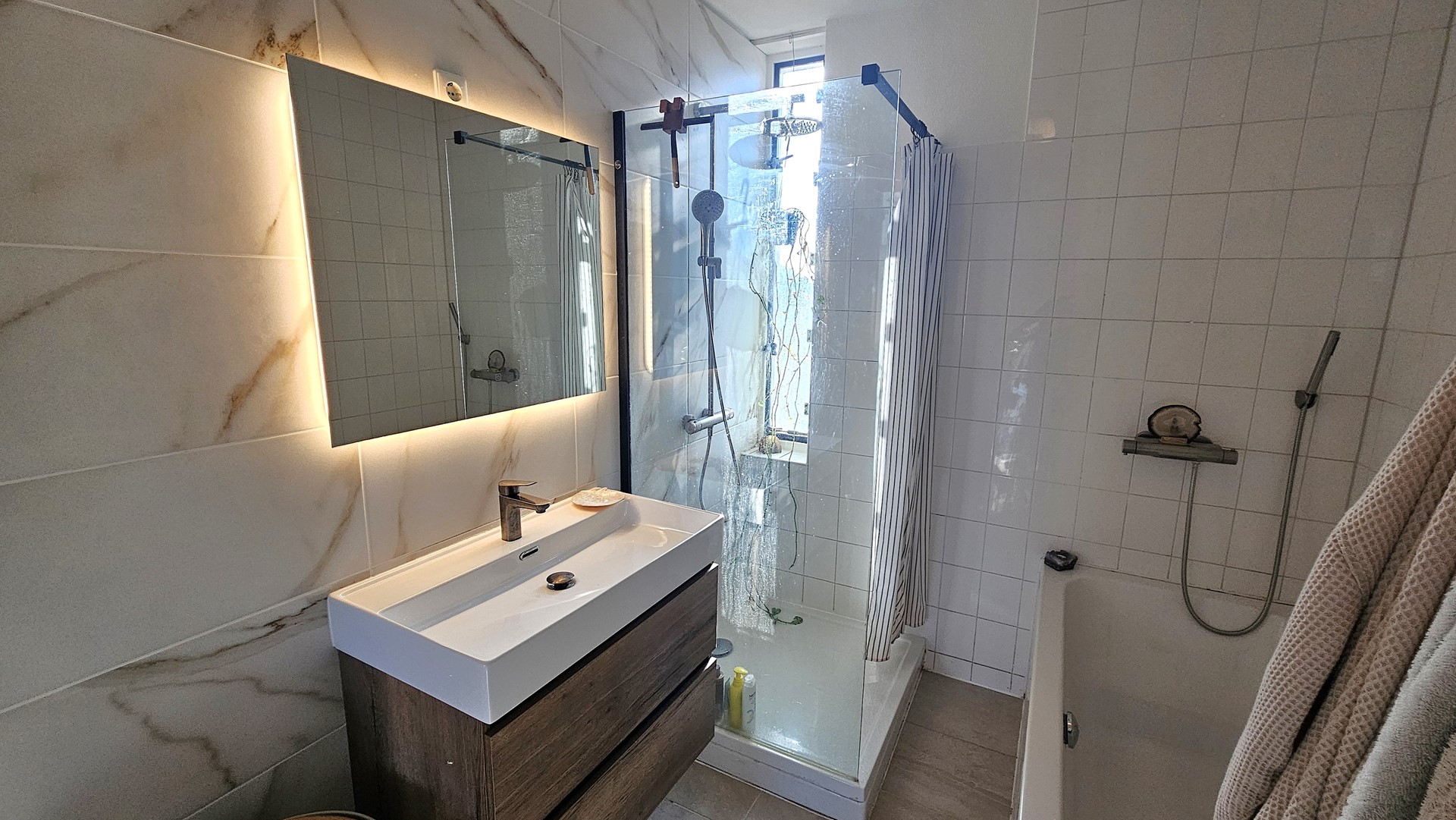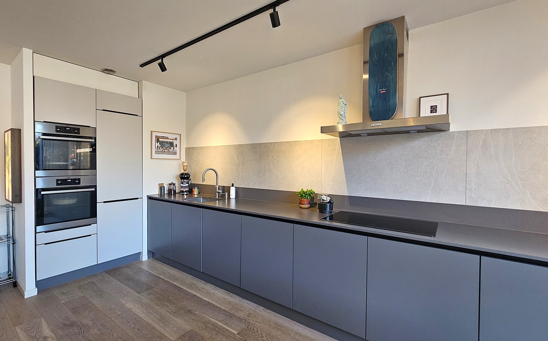 The spacious south-facing roof terrace of approximately 27 m² is a definite asset. A wonderful place to relax, work, or start the day in peace. The bright living room with a modern open-plan kitchen forms the heart of the home. The combination of high-quality finishes, custom cabinets, and spacious layout gives the home a fresh, contemporary feel.