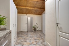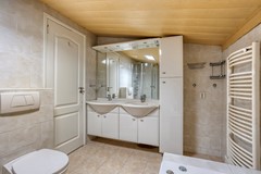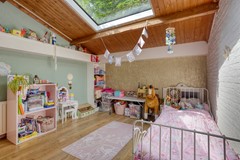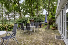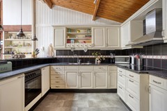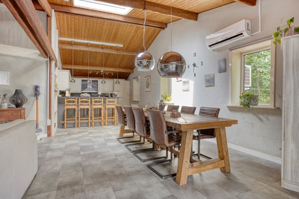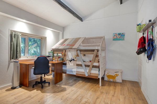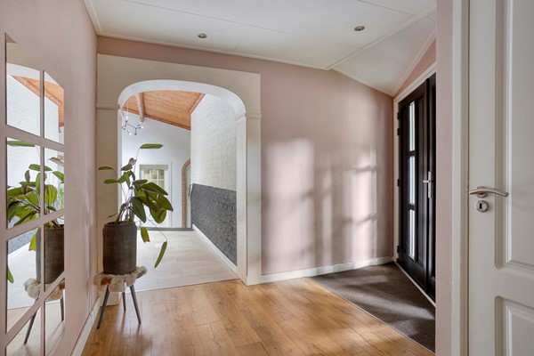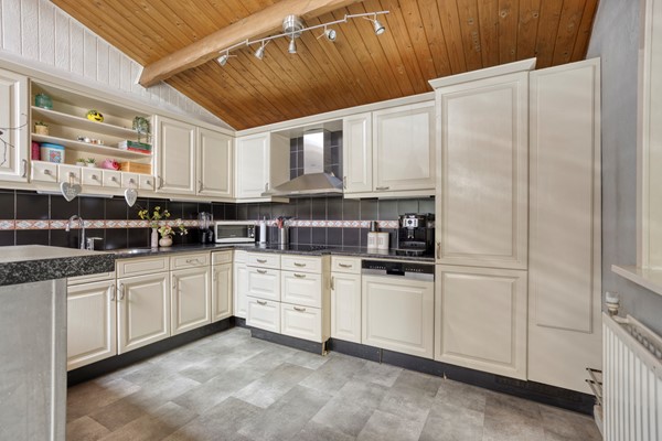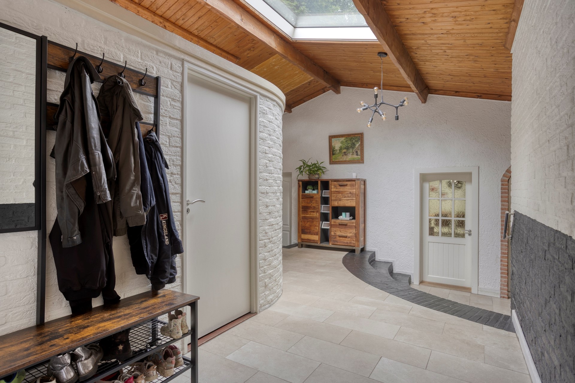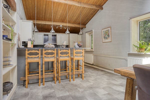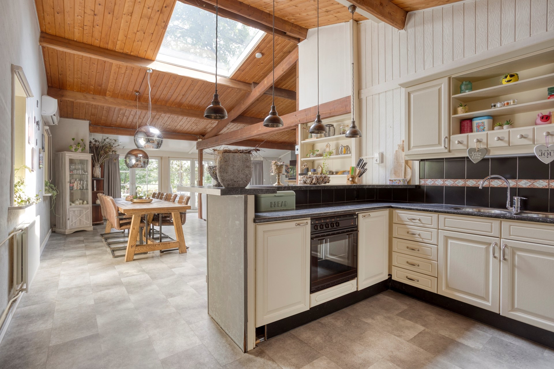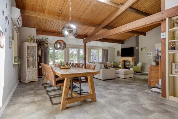 Bij binnenkomst betreedt u de woning via een royale hal die direct de ruimtelijkheid van de bungalow benadrukt. De woning heeft een speels karakter met enkele hoogteverschillen, wat zorgt voor een prettige, dynamische indeling. De royale woonkamer is bijzonder licht door de grote raampartijen die een prachtig uitzicht bieden over de paardenbak en de omliggende landerijen. Een sfeervolle gashaard vormt hier het warme middelpunt, waardoor het zowel overdag als ’s avonds heerlijk vertoeven is. De ruime woonkeuken vormt het hart van het huis en kan geheel naar eigen smaak worden gemoderniseerd, waardoor u hier een sfeervolle leefruimte kunt creëren die past bij uw persoonlijke stijl. De woning beschikt over vier royale slaapkamers en drie badkamers, waarvan één recent is vernieuwd. Tevens is het kantoor ook te gebruiken als slaapkamer. Dankzij de praktische indeling zijn er tevens uitstekende mogelijkheden voor mantelzorg of het realiseren van een gelijkvloerse, levensloopbestendige woonopzet.