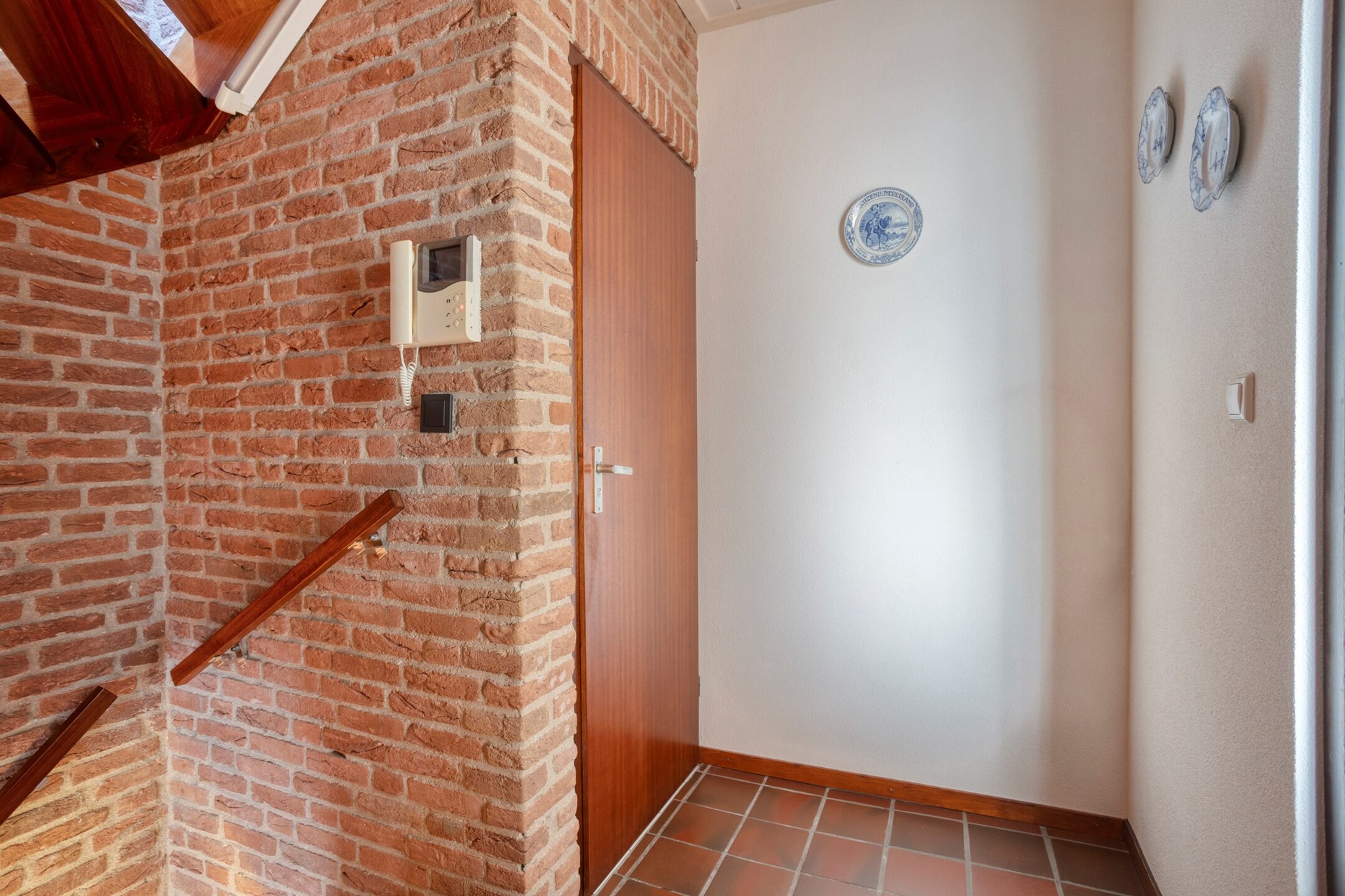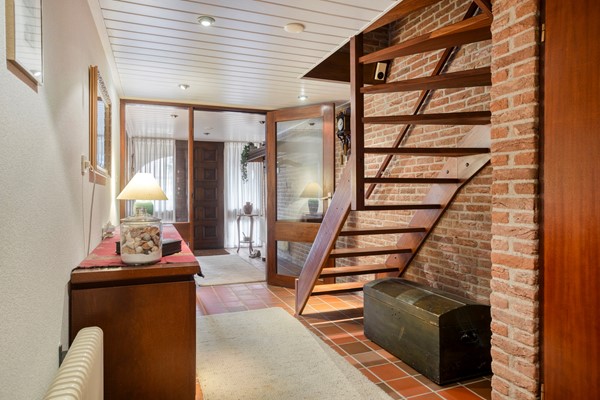 Via de eigen oprit bereikt u de overdekte entree van de woning. U komt binnen in een ruime hal die toegang biedt tot de inpandige garage, de multifunctionele hobbykamer, de wasruimte, de provisie-/kelderkast en de trap naar de eerste verdieping. Dit zorgt voor een praktische en overzichtelijke indeling.