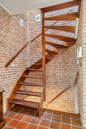 De vaste trap leidt naar de tweede verdieping. Hier bevinden zich drie slaapkamers, een tweede separaat toilet en de badkamer.
