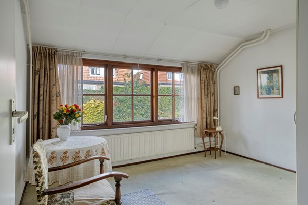De woonkamer is heerlijk licht dankzij de grote raampartijen aan weerszijden. De ruimte biedt volop indelingsmogelijkheden voor een royale zit- en eethoek. De open haard met schouw zorgt voor extra sfeer en warmte. Via schuifpuien bereikt u aan de voorzijde het zonnige balkon en aan de achterzijde de tuin.