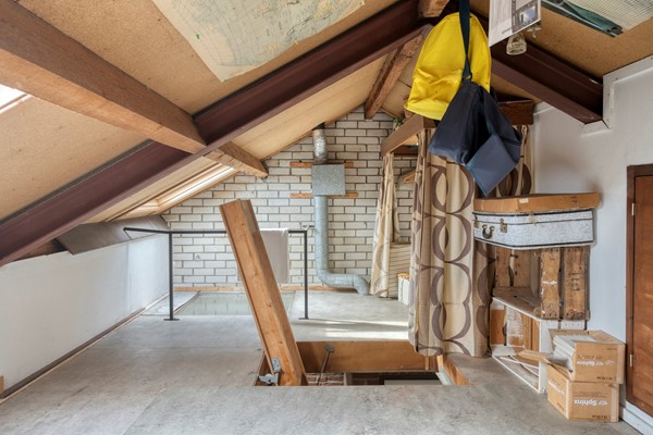 Via een vlizotrap is de bergzolder bereikbaar. Deze ruimte bevindt zich in de nok van het dak en is ideaal voor het opbergen van seizoensgebonden spullen. Tevens bevindt zich hier de cv-ketel.