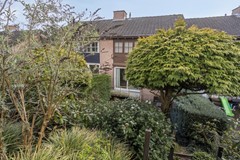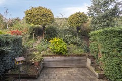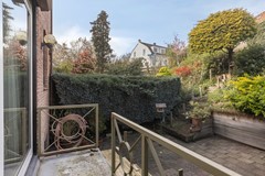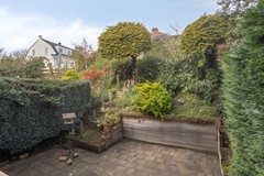 De groene achtertuin is een fijne plek om te ontspannen en is ingericht met een combinatie van bestrating en gevarieerde beplanting. Het natuurlijke hoogteverschil geeft de tuin een speels en uniek karakter. Aan de voorzijde geniet u op het zonnige balkon van een vrij uitzicht over de omgeving.