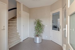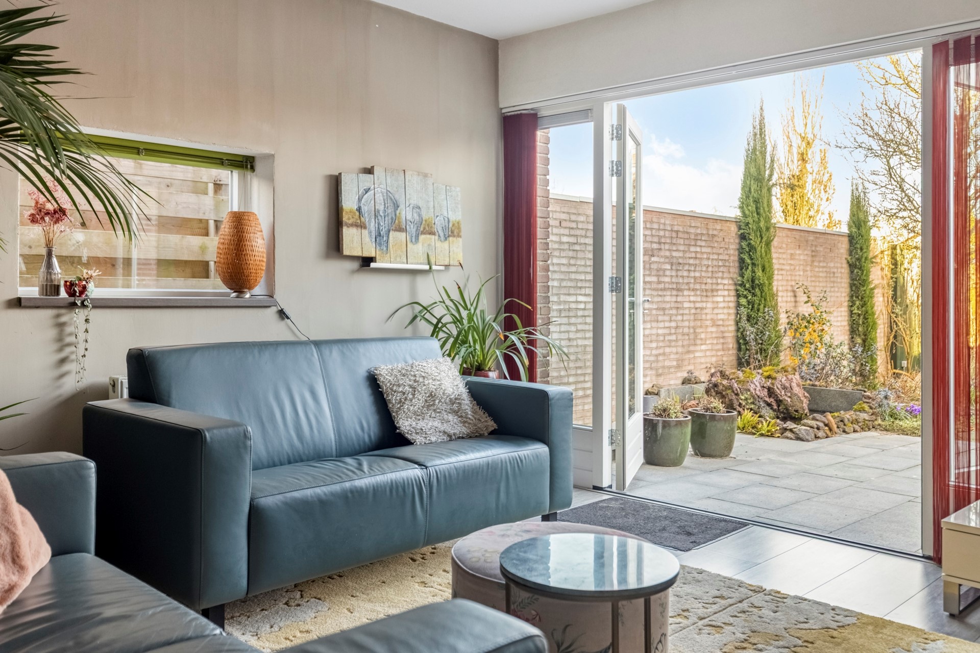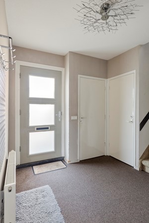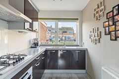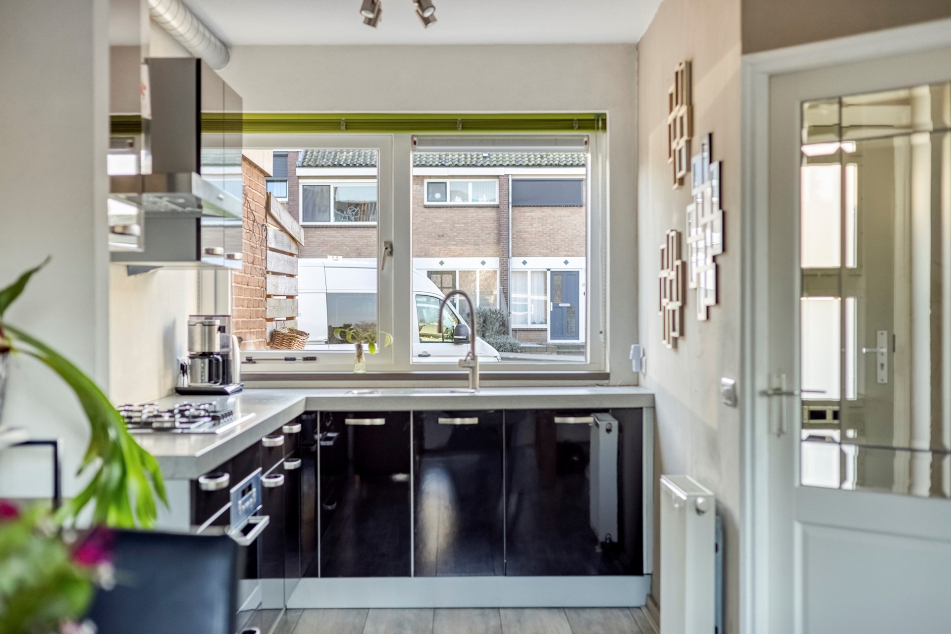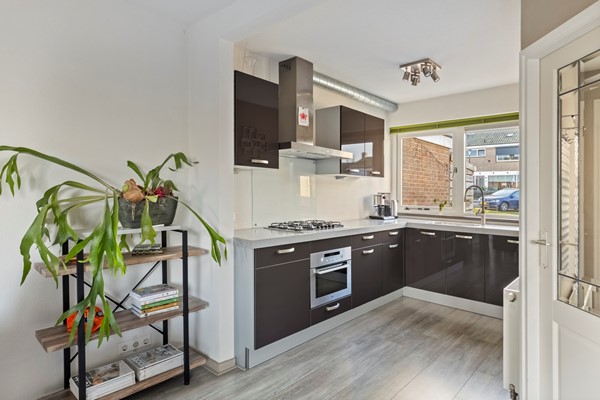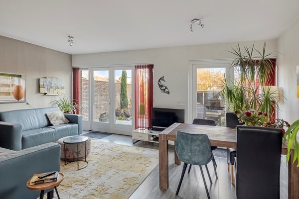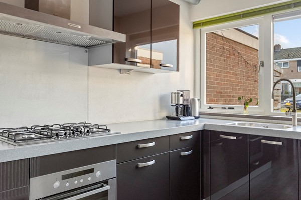 Via de entree komt u in een ruime hal met de trapopgang, modern toilet en toegang tot de leefruimte. De woonkamer is prettig licht dankzij de grote raampartijen aan zowel de voor- als achterzijde. Aan de tuinzijde openen dubbele deuren naar het terras, waardoor binnen en buiten moeiteloos in elkaar overlopen. Aan de voorzijde bevindt zich de open keuken voorzien van een hoekmeubel, uitgevoerd in een moderne kleurstelling en uitgerust met diverse inbouwapparatuur. Vanuit de hal zijn tevens de praktische kelder en de berging bereikbaar, ideaal voor provisie, dit witgoed of extra opslag. Het geheel voelt verzorgd en eigentijds aan.