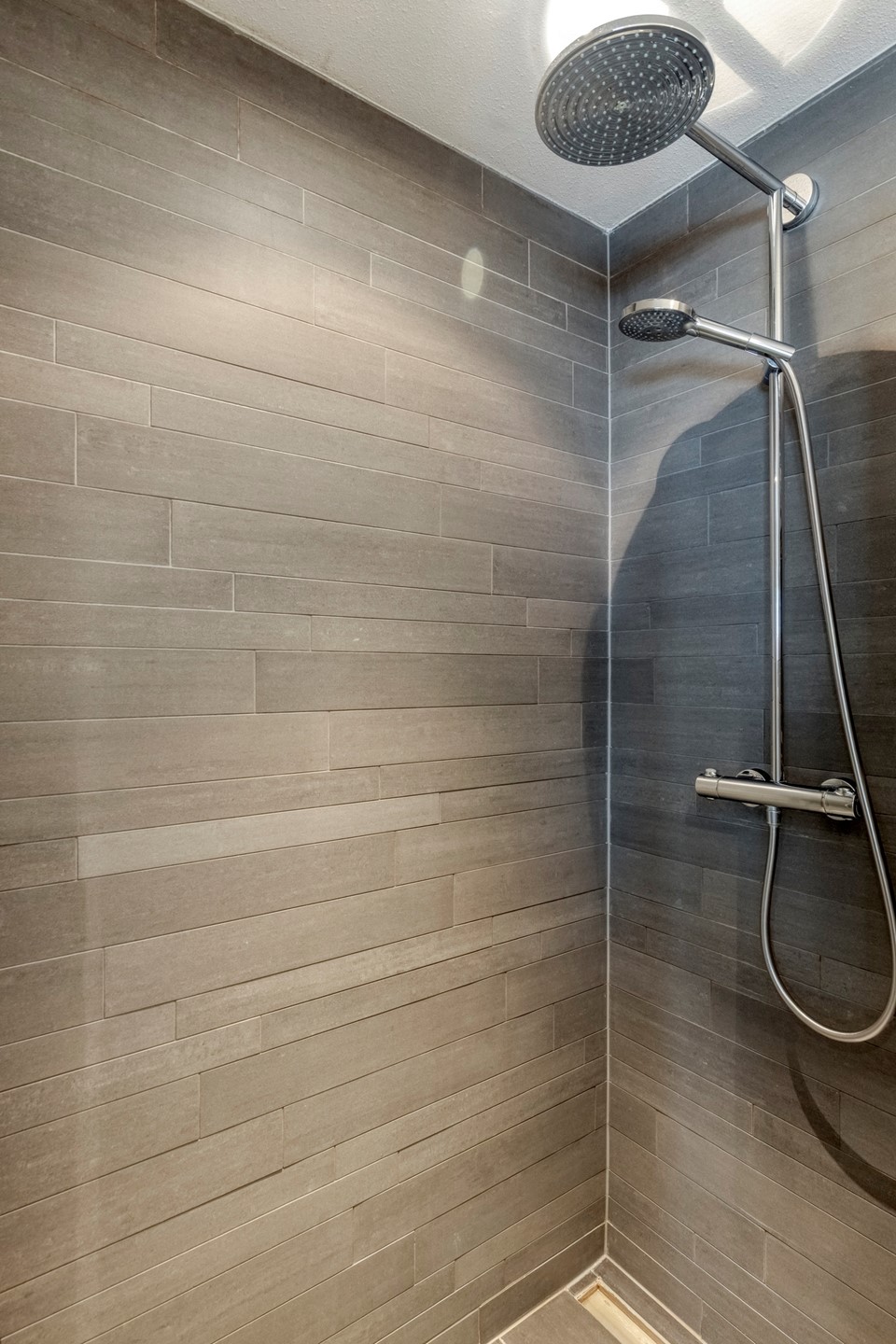 Op de eerste verdieping treft u drie slaapkamers, elk met een prettige lichtinval en een neutrale afwerking. Twee zijn gelegen aan de achterzijde en een derde aan de voorzijde, met zicht op de straat. De moderne badkamer is stijlvol afgewerkt met lichte en donkere tegels en beschikt over een inloop-regendouche, een wastafelmeubel met dubbele kraan, wandcloset en een designradiator. Alles is praktisch ingedeeld en keurig onderhouden.