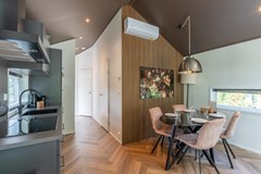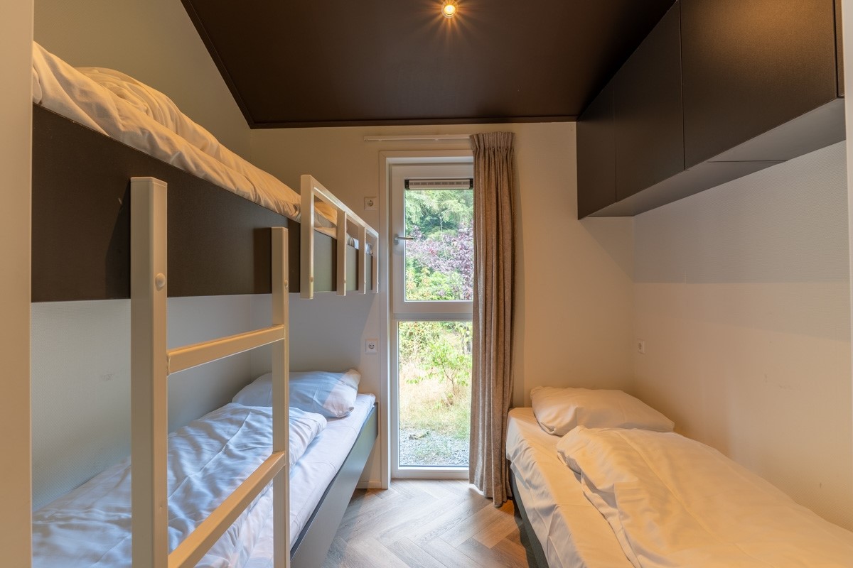 De cottage beschikt over twee slaapkamers: één met een comfortabel tweepersoonsbed en een tweede kamer met een stapelbed én een extra eenpersoonsbed, perfect voor gezinnen of kleine gezelschappen. De moderne badkamer is voorzien van een ruime inloopdouche en een stijlvolle wastafel. Daarnaast is er een apart toilet aanwezig voor extra comfort. Dankzij de vloerverwarming én airconditioning is de woning in elk seizoen aangenaam qua temperatuur. Uiteraard is er ook wifi aanwezig, zodat je altijd verbonden blijft. De omheinde tuin met loungeset en eettafel nodigt uit om volop te genieten van het buitenleven. Na een lange boswandeling is de hottub dé plek om te ontspannen.