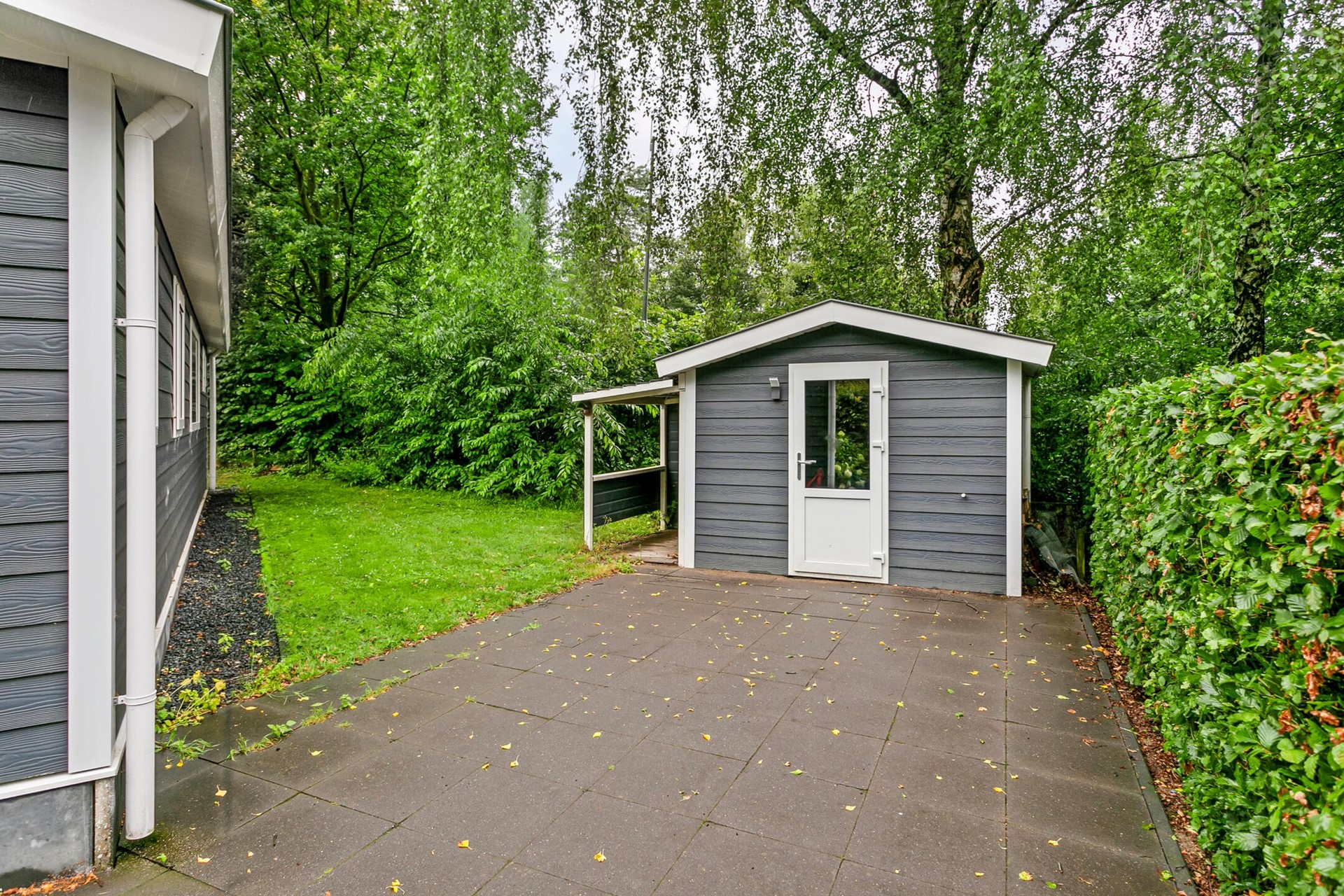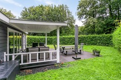 De woning beschikt over een groene, omringende tuin met een aangelegd terras en een externe berging. Het terras is overkapt en hiermee ideaal voor het plaatsen van een loungeset of buitentafel. De berging van 5 m² is perfect voor het stallen van fietsen of tuinspullen.