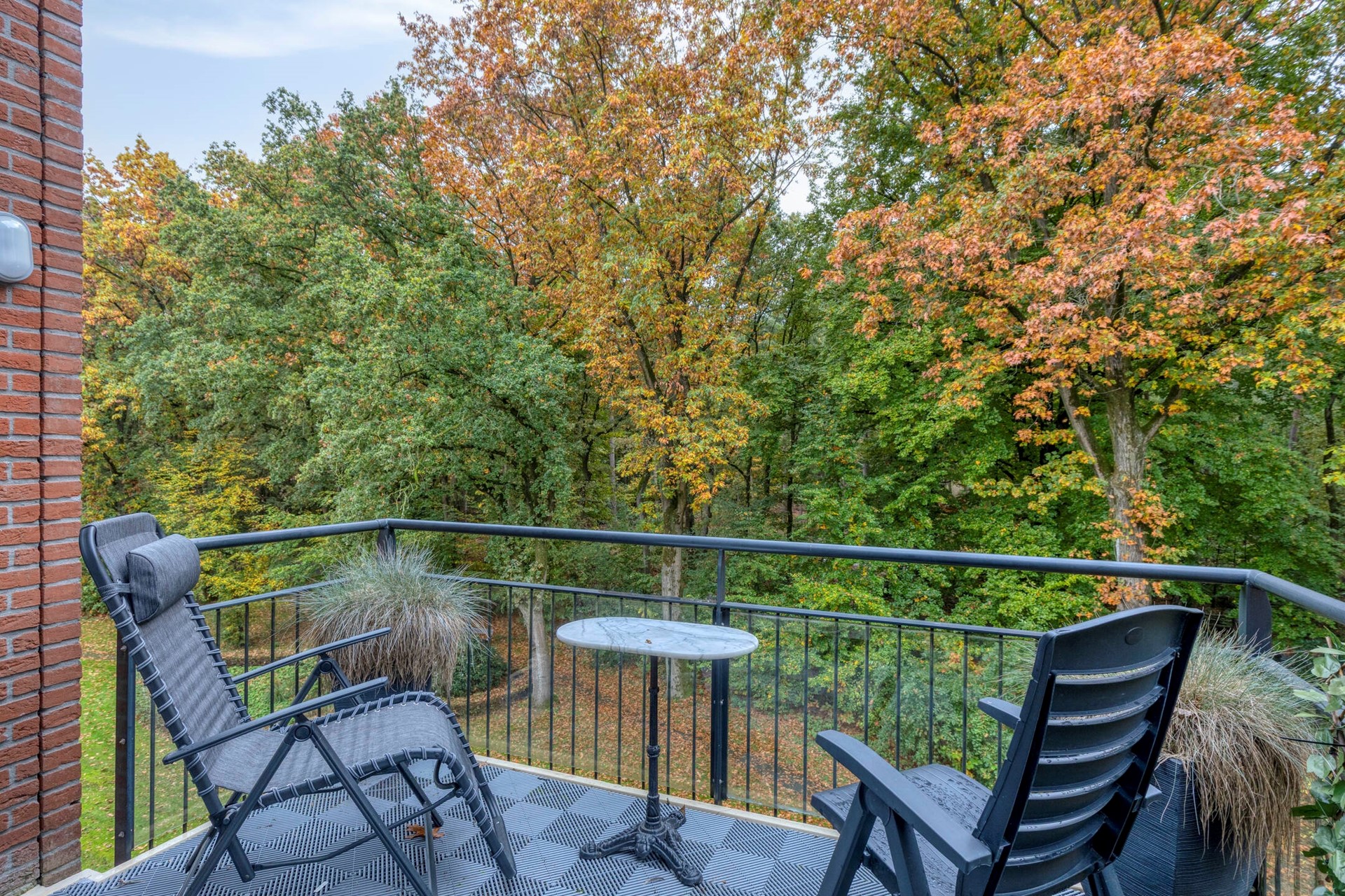 Het balkon is een heerlijke verlenging van het appartement: een plek waar u direct het wonen aan de bosrand voelt! Hier kijkt u uit over de boomtoppen met elk seizoen een ander kleurenpalet: van fris lentegroen tot warm herfstgoud. Het balkon is te bereiken vanuit zowel de woonkamer, als vanuit de twee slaapkamers. De ligging biedt rust en privacy, met genoeg ruimte voor een gezellig zitje waar u ongestoord kunt genieten van een kop koffie of een goed boek.