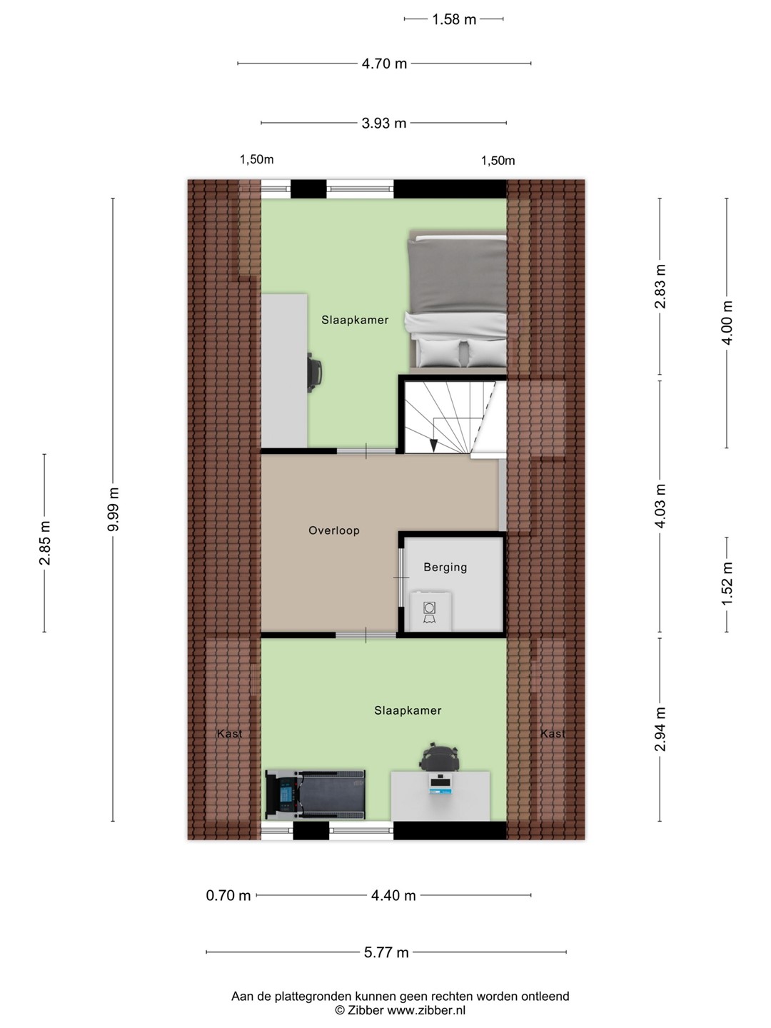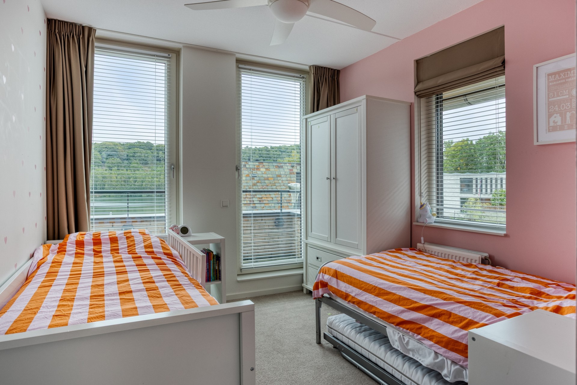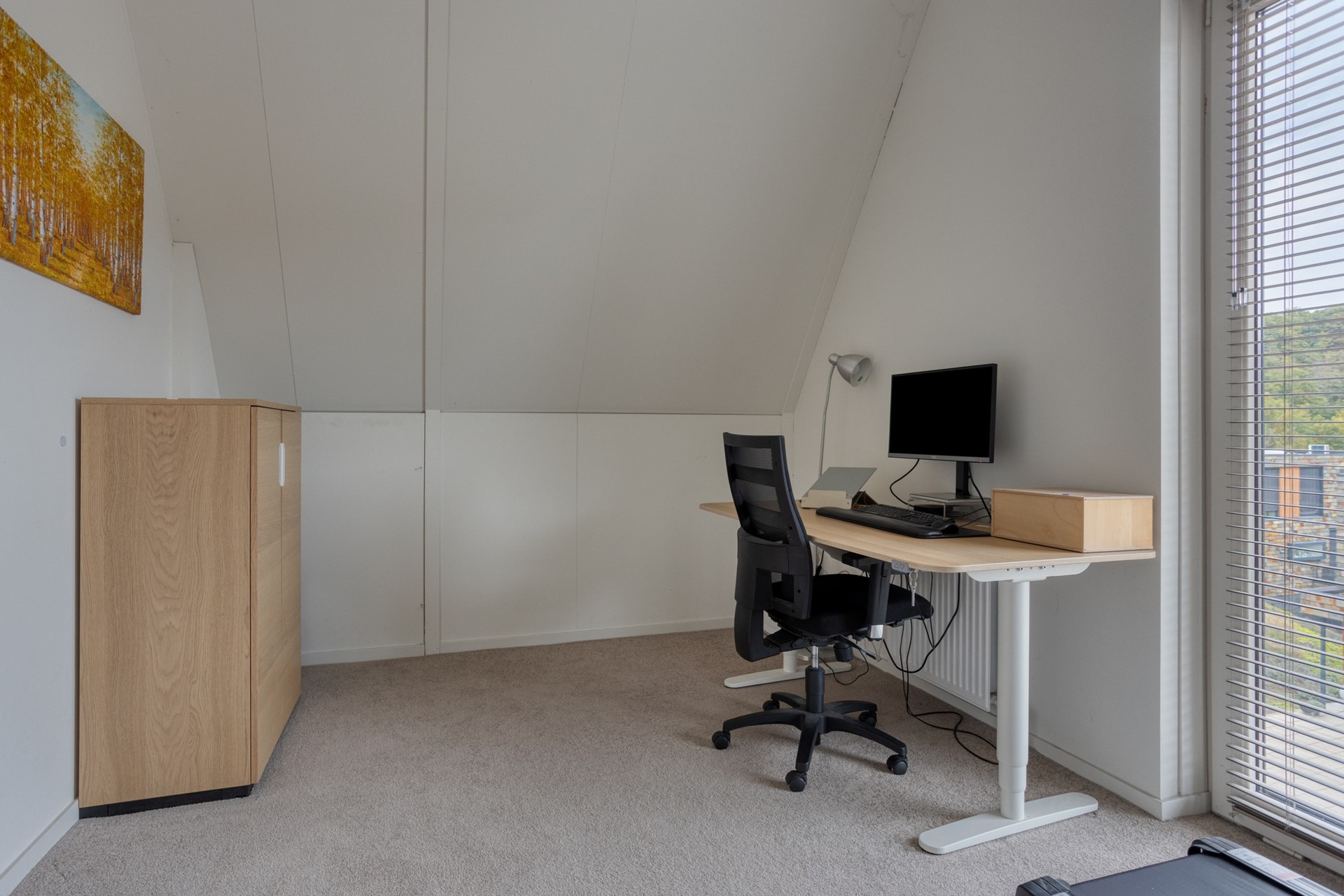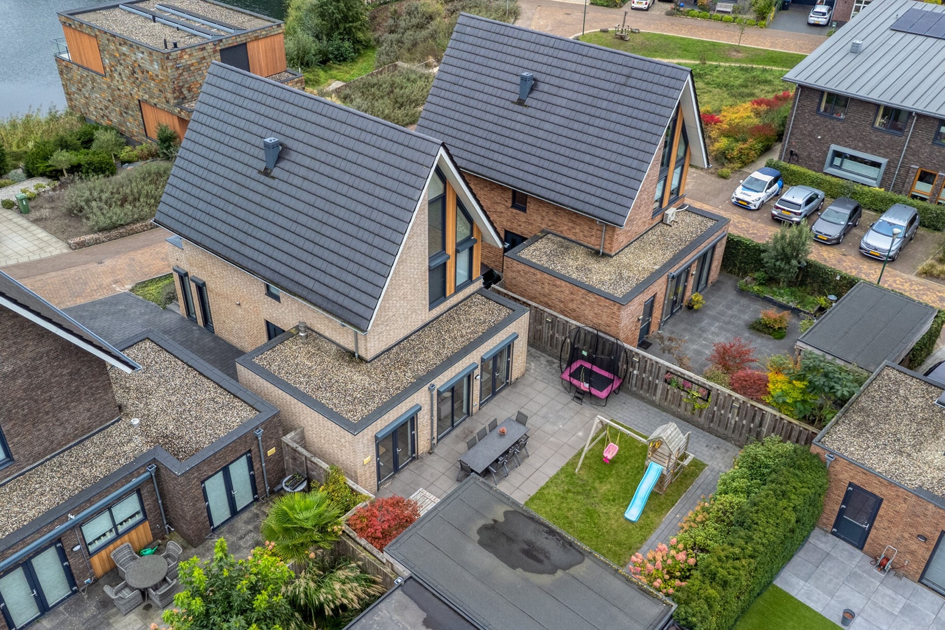 Onder de hoge, karakteristieke kap bevindt zich een verrassend ruime verdieping met nog twee ruime slaapkamers en een berging/wasruimte. Dankzij de hoge nok en grote raampartijen voelt deze verdieping licht en open aan. Deze ruimte leent zich uitstekend als tienerverdieping, logeerruimte of thuiskantoor – aan flexibiliteit geen gebrek. En ook vanuit hier heeft u een prachtig uitzicht op het water en het achterliggende natuurgebied.