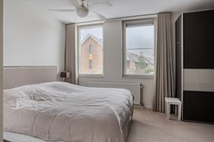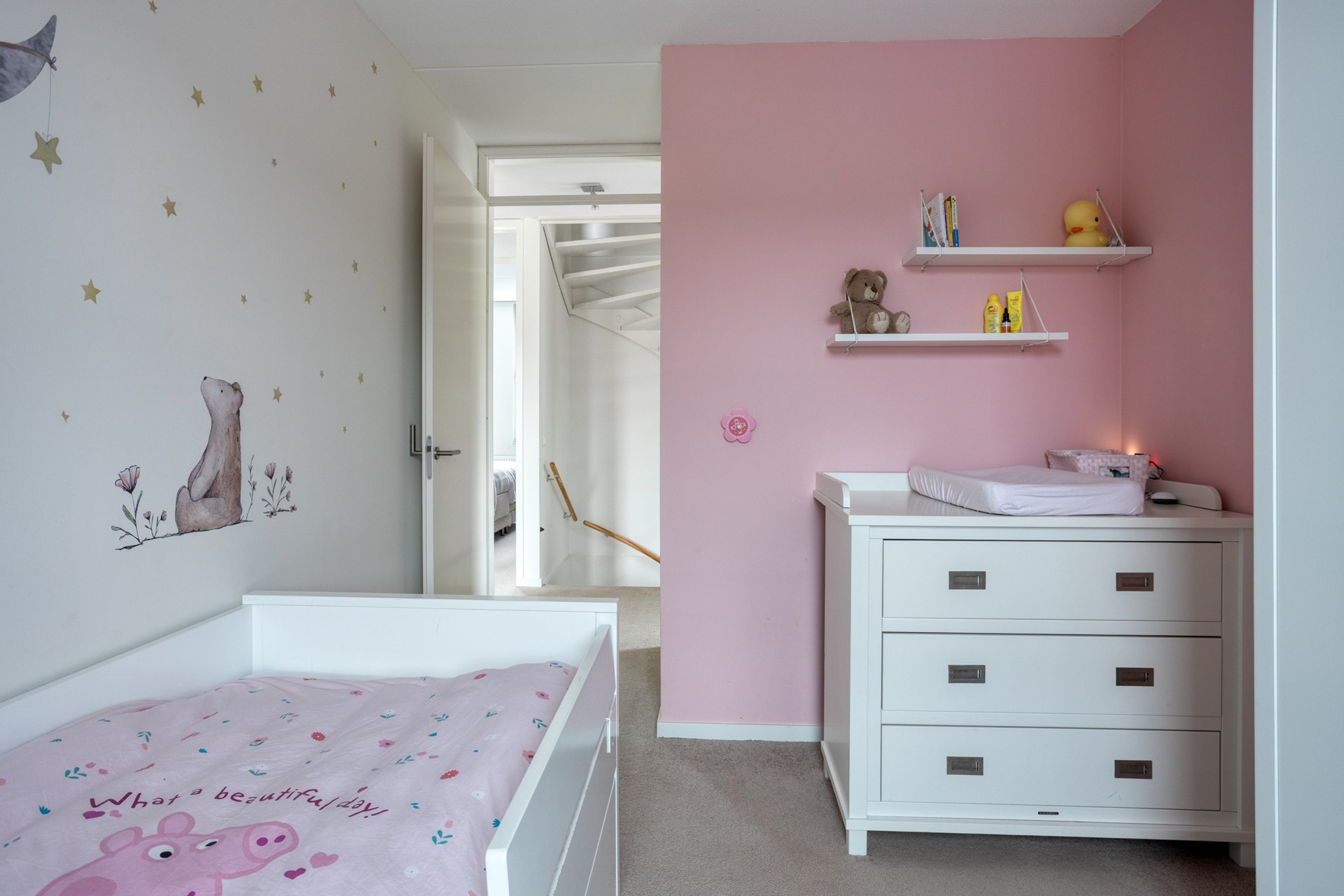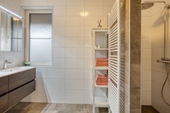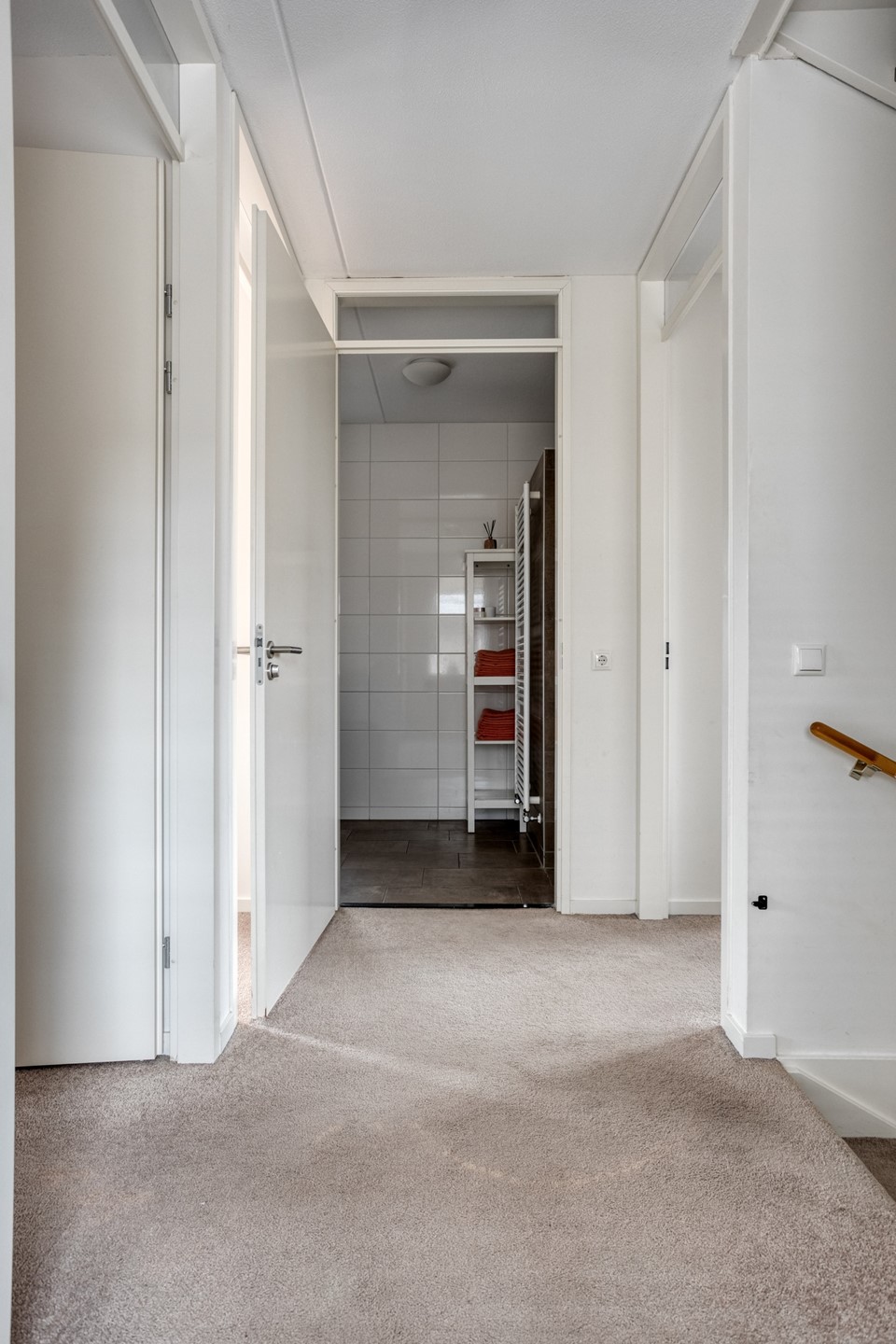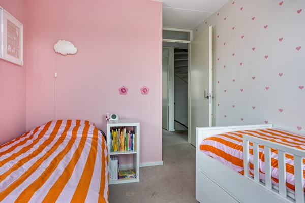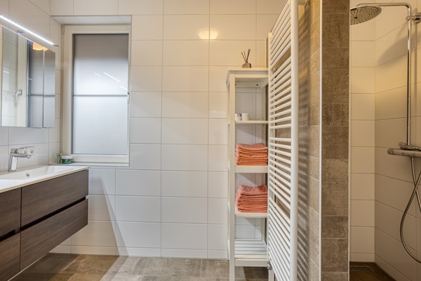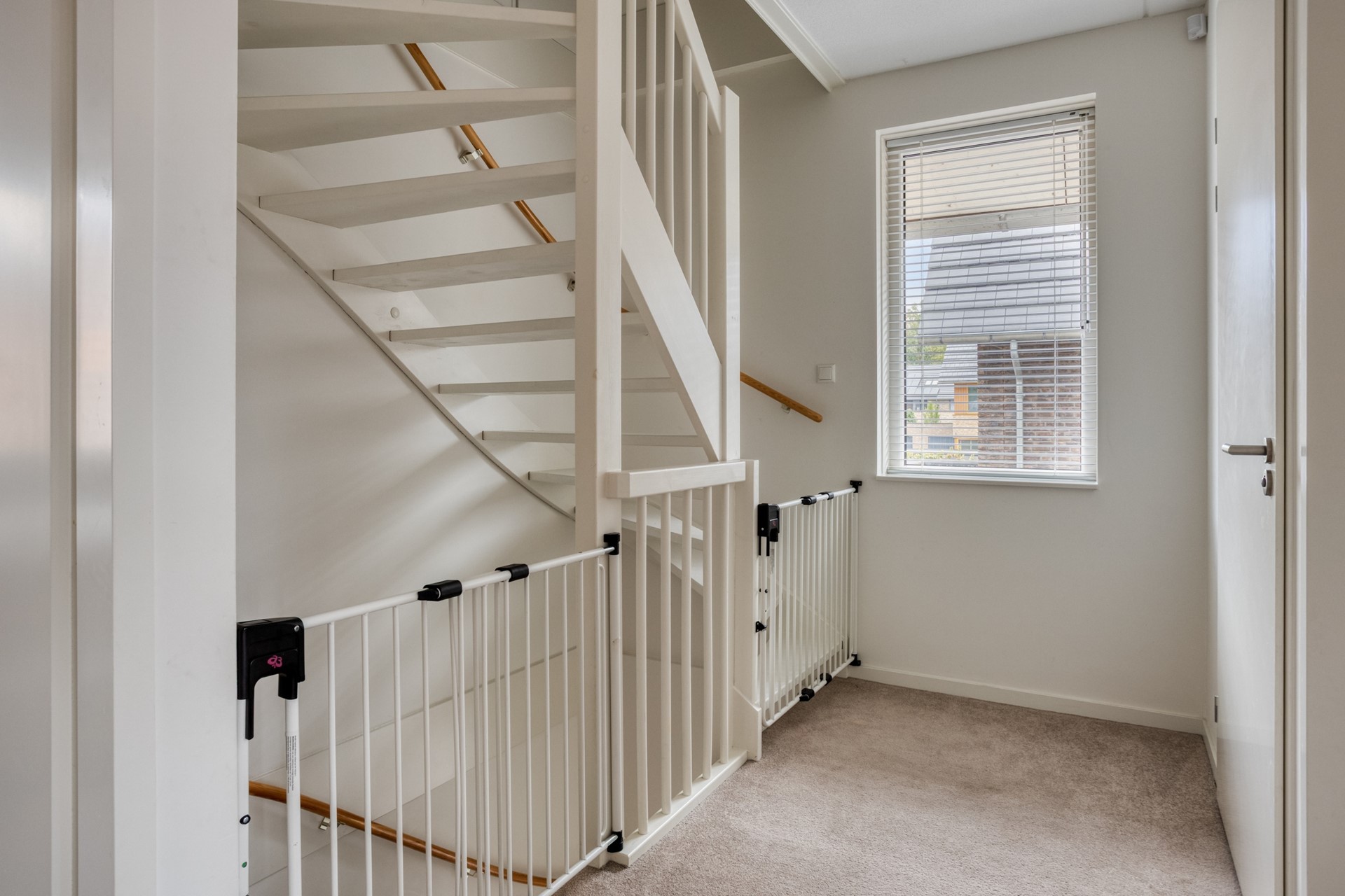 De eerste verdieping telt drie ruime slaapkamers, elk met een prettige lichtinval en nette afwerking. De hoofdslaapkamer ligt aan de achterzijde en beslaat de volledige breedte van de woning. De kamers aan de voorzijde grenzen beiden aan een balkon, waar u in de ochtendzon geniet van een vrij uitzicht over het vogelenzangmeer en de omliggende natuur. De badkamer is modern en praktisch ingericht met een dubbel wastafelmeubel, inloop regendouche en designradiator. Aan de overloop grenst bovendien een separaat toilet.