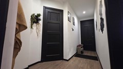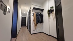 You enter the home through the central entrance. Here, you'll immediately find several fixed storage units, ideal for coats, supplies, or laundry appliances. A practical detail: a separate toilet—always convenient.