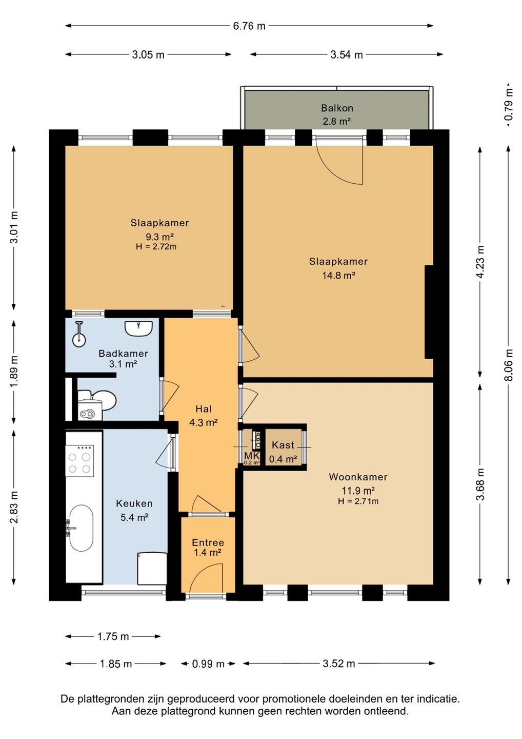 | Number of rooms | 3 (of which 2 bedrooms) |