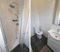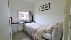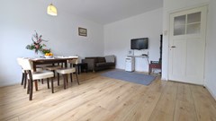 De begane grond is momenteel ingedeeld met een woonkamer, aparte slaapkamer, keuken en badkamer. Deze opzet is functioneel, maar sluit niet volledig aan bij de woonwensen van nu. Juist hier ligt de kracht van deze woning: door de woonkamer en slaapkamer samen te voegen, creëert u eenvoudig een royale en lichte leefruimte met een moderne open indeling.