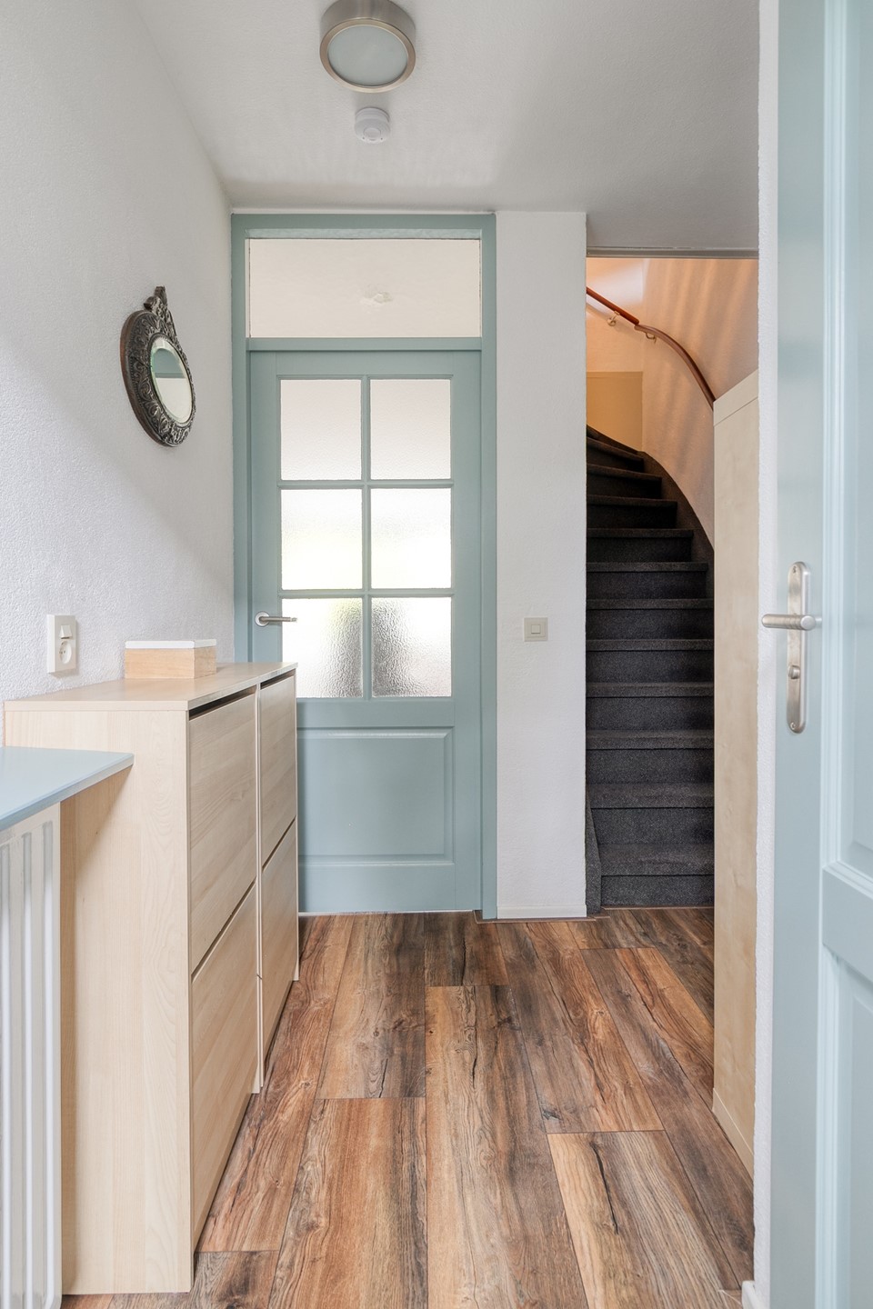 Vanaf de rustige straat bereikt u de woning via de eigen oprit, waar ruimte is om uw auto te parkeren. Ook heeft u hier directe toegang tot de ruime garage, handig voor extra opslag of als hobbyruimte. Eenmaal binnen komt u in de hal, die een verzorgde indruk maakt en toegang biedt tot het woongedeelte. De lichte afwerking en het gevoel van ruimte heten u direct welkom.