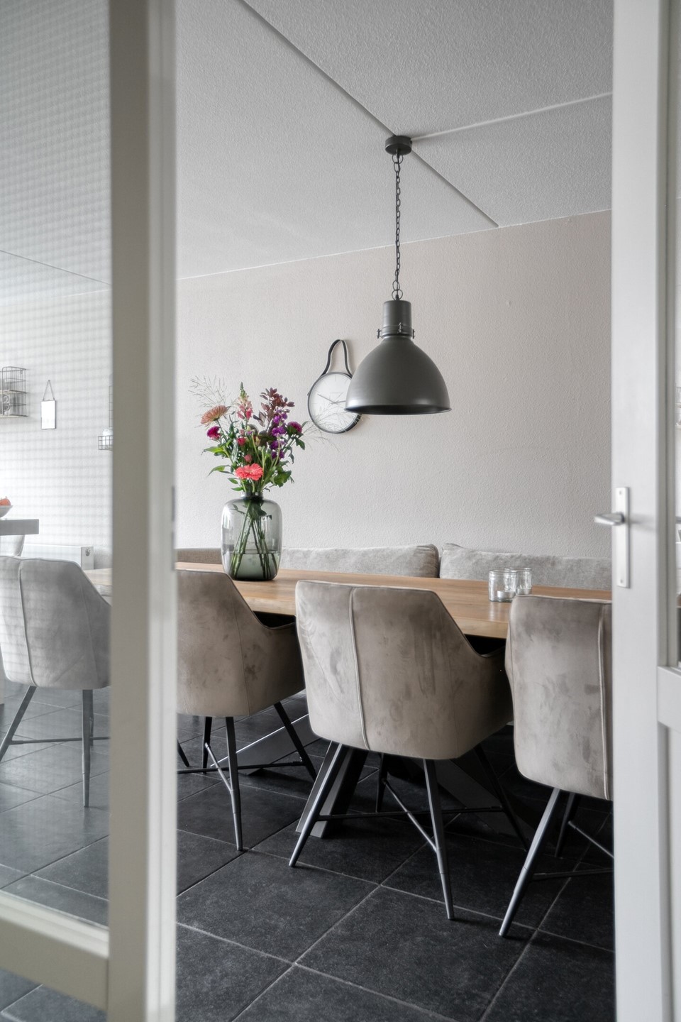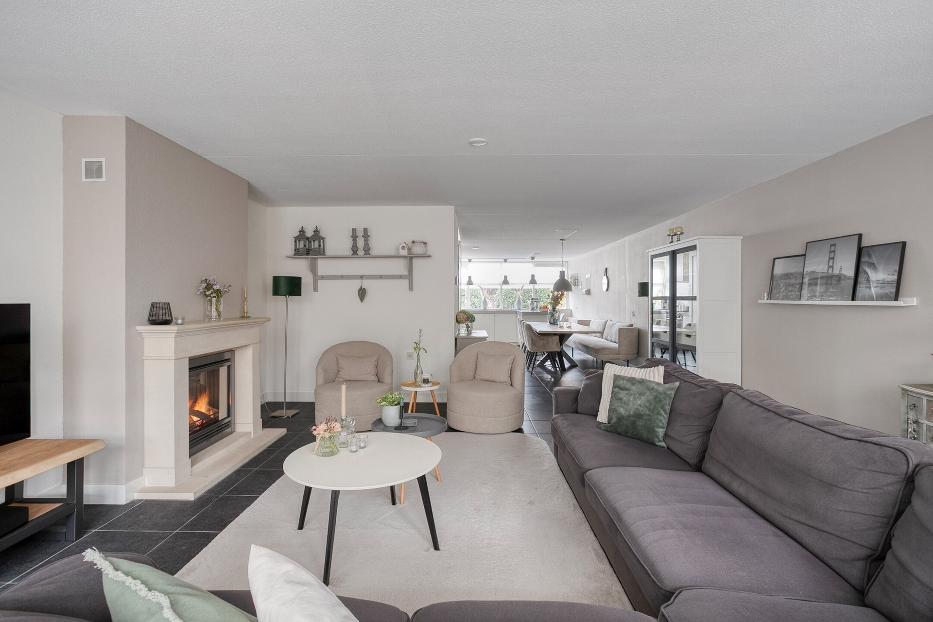 Vervolgens betreedt u de royale woonkamer, die uitblinkt door zijn open indeling en grote raampartijen. De overvloed aan licht geeft de ruimte een warme en uitnodigende sfeer. De woonkamer biedt volop mogelijkheden om een comfortabele zithoek en een sfeervolle eethoek te creëren. Eyecatcher is de haard, die niet alleen warmte, maar ook karakter toevoegt aan het interieur. Dankzij de openslaande deuren naar de achtertuin loopt binnen en buiten hier naadloos in elkaar over.