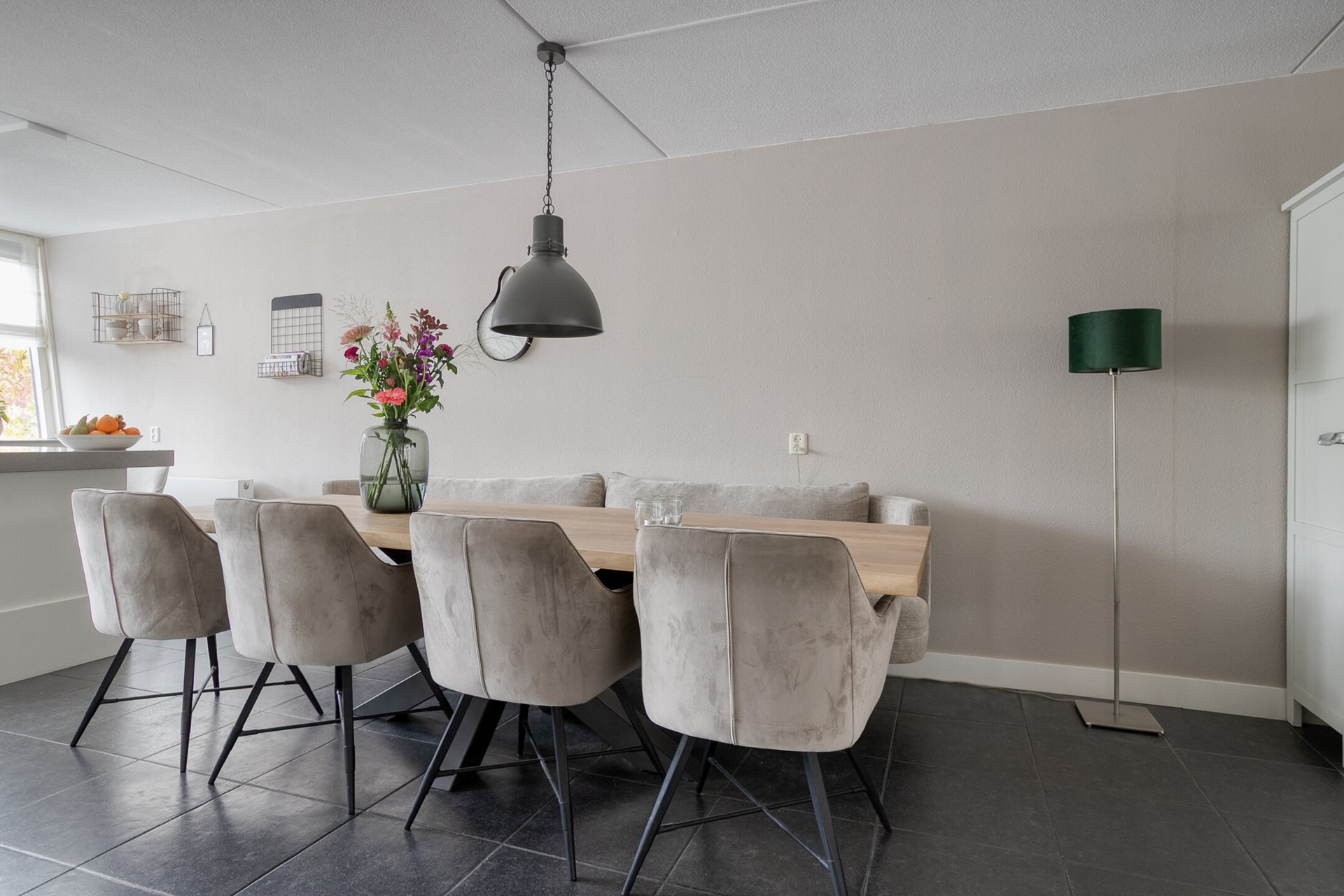 Aan de voorzijde bevindt zich de moderne, U-vormige keuken, die in open verbinding staat met de woonkamer. Hier beschikt u over een compleet keukenblok met Boretti gasfornuis met oven, ingebouwde stoom-ovencombinatie, koelkast, vaatwasser, spoelbak en voldoende opbergruimte in zowel lades als kastjes. De moderne uitstraling, gecombineerd met het praktische barretje, maakt dit een fijne plek om te koken én samen te komen.