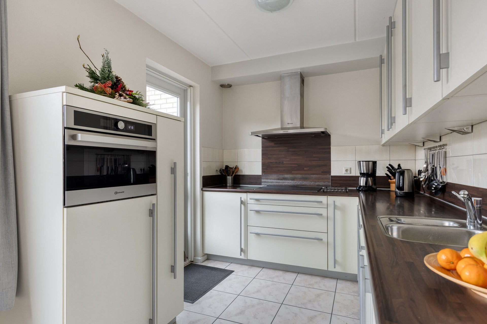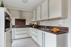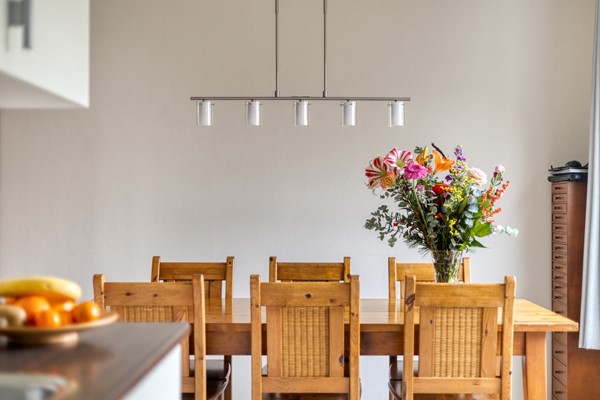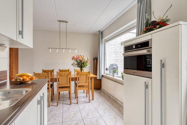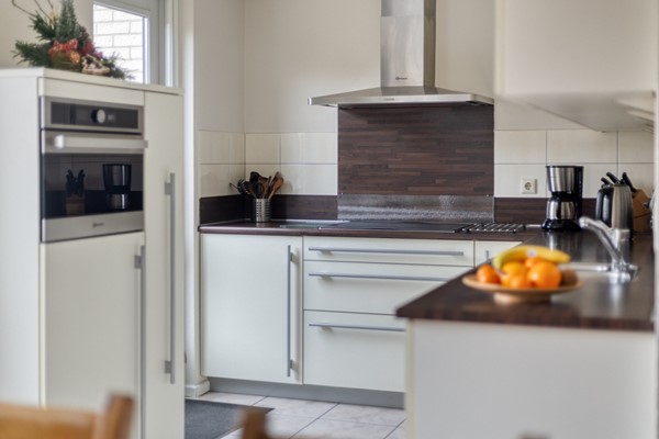 Via de eigen oprit bereikt u de overdekte entree van de woning. In de hal valt direct het verzorgde karakter op. Hier bevinden zich het toilet, de trapopgang en toegang tot het leefgedeelte. De woonkamer is ruim opgezet en dankzij de grote raampartijen aangenaam licht. Vanuit de woonkamer heeft u een schitterend vrij uitzicht op de groene omgeving. Er is voldoende ruimte voor een comfortabele zithoek én een royale eettafel. De keuken sluit hier logisch op aan en is praktisch ingericht, met volop werk- en kastruimte en diverse inbouwapparatuur. Zo beschikt u over een inductiekookplaat, afzuigkap, combi-oven en koelkast. Vanuit de keuken is er direct contact met de tuin, wat het dagelijks gebruik prettig maakt. De begane grond voelt overzichtelijk en ruimtelijk aan, met een indeling die zowel praktisch als uitnodigend is.