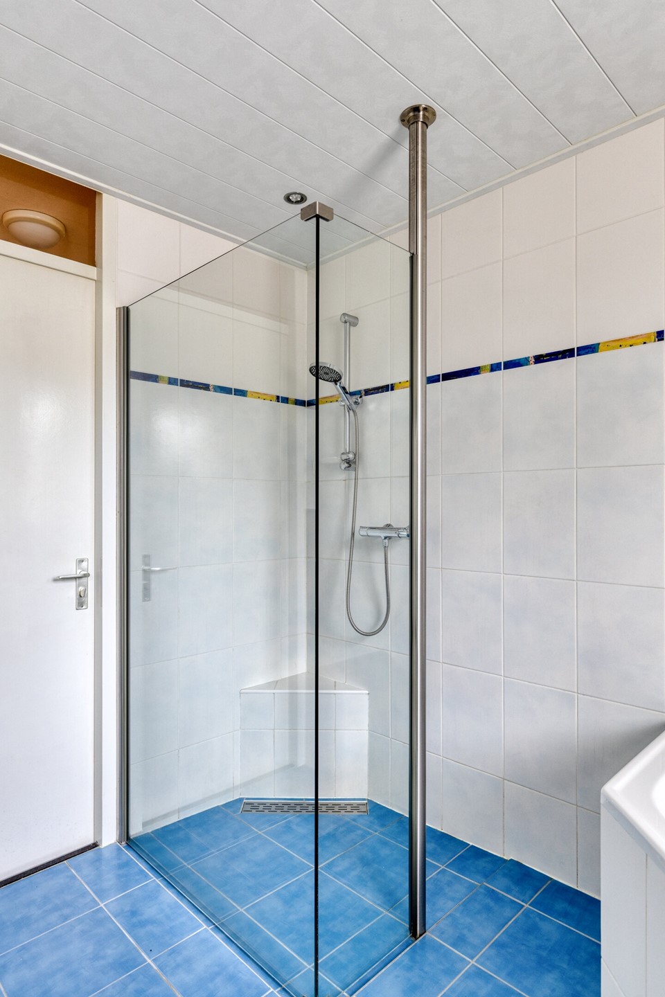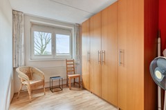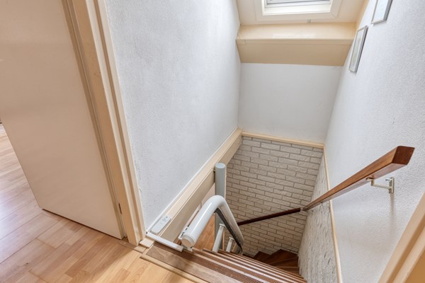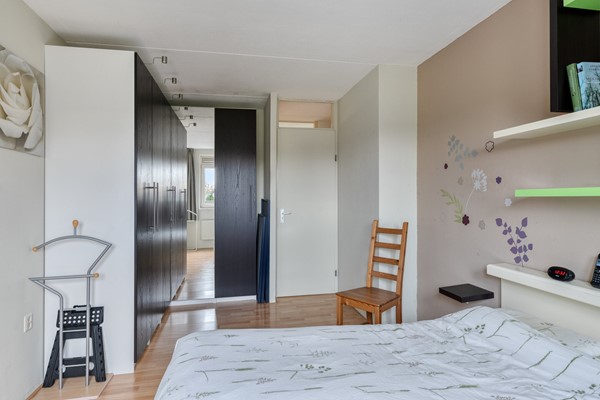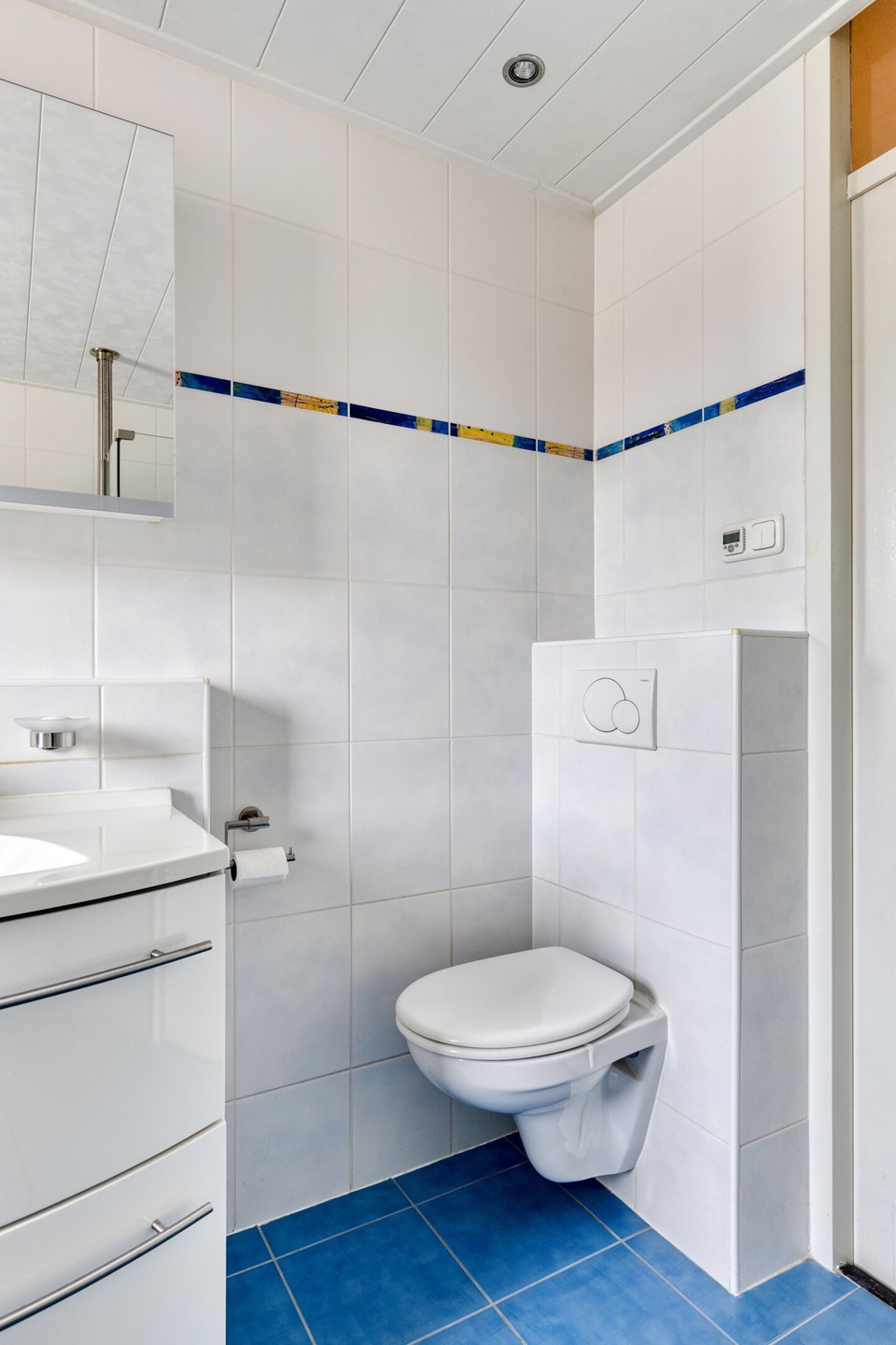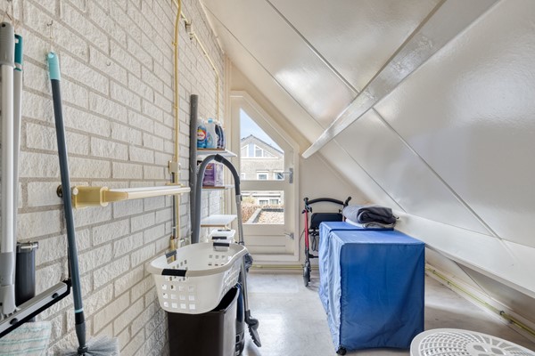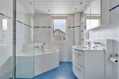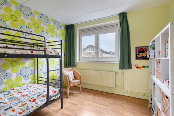 Op de eerste verdieping bevinden zich drie volwaardige slaapkamers, elk met een prettig formaat en een rustige uitstraling. De kamers zijn flexibel in te delen en daarmee geschikt als slaap-, werk- of hobbyruimte. De badkamer is compleet uitgevoerd met een ligbad, separate douche, wastafelmeubel en tweede toilet. Dankzij het raam is er natuurlijke ventilatie en daglicht, wat bijdraagt aan het comfort. Ook hier is de afwerking verzorgd en functioneel, waardoor de verdieping direct goed te gebruiken is, met ruimte voor eventuele modernisering naar eigen smaak. Aan de overloop grenst een ruime berging/wasruimte, met een deur richting het platdak van de garage.