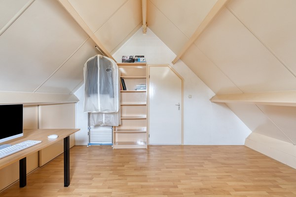 De tweede verdieping verrast door de hoeveelheid bruikbare ruimte. Hier bevinden zich twee extra slaapkamers met daglicht; beide zijn ook ideaal als werkplek of logeerkamer. De schuine kap geeft de ruimte karakter, terwijl de vaste elementen zorgen voor een praktische indeling. Daarnaast is er volop bergruimte aanwezig achter de knieschotten, voor extra opbergmogelijkheden. Een verdieping die zich moeiteloos aanpast aan veranderende woonwensen.
