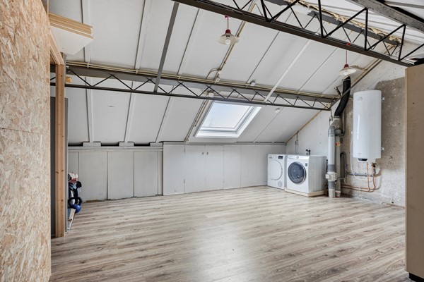 Een tweede vaste trap brengt u naar de ruime en multifunctionele zolderverdieping. Deze etage is ideaal om een 5e slaapkamer, logeerkamer, hobbyruimte of werkplek te realiseren en biedt voldoende ruimte voor het plaatsen van een bed, bureau of kast. Dankzij de aanwezige witgoedaansluitingen is de verdieping ook uitermate geschikt als wasruimte. De zolder vormt een waardevolle aanvulling op de woning en geeft u alle vrijheid om de ruimte naar eigen wensen in te delen.