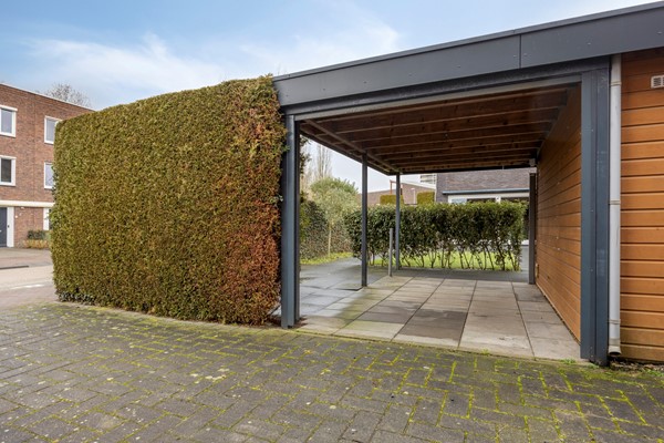 Achterin de tuin bevindt zich een houten berging met elektra en een sfeervolle overkapping met elektrisch bedienbare roldeur. Een perfecte plek voor lange zomeravonden en gezellige momenten met familie en vrienden.