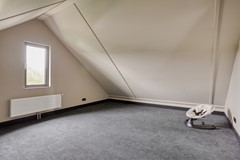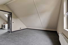 De tweede verdieping telt nog twee volwaardige slaapkamers met hoge nok en strak afgewerkte wanden, perfect als tienerkamer, kantoor of hobbyruimte. Op de ruime overloop vindt u de witgoedaansluitingen en cv-installatie. Dankzij de grote dakvlakken en de goede isolatie is het hier niet alleen ruim, maar ook energiezuinig en comfortabel.