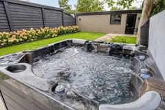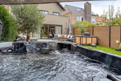 De achtertuin is een verlengstuk van de leefruimte – strak aangelegd, groen omzoomd en gericht op ontspanning. Hier geniet u in stijl van de buitenlucht, met een groot terras, jacuzzi(optioneel) en voldoende privacy. De tuin is diep en onderhoudsvriendelijk, voorzien van volwassen beplanting, een royaal gazon. Achter bevindt de toegang tot een dubbele garage, deze is met de auto bereikbaar via de achterzijde. Deze tuin biedt de perfecte combinatie van luxe en functionaliteit, waar elke zomerdag als vakantie voelt.