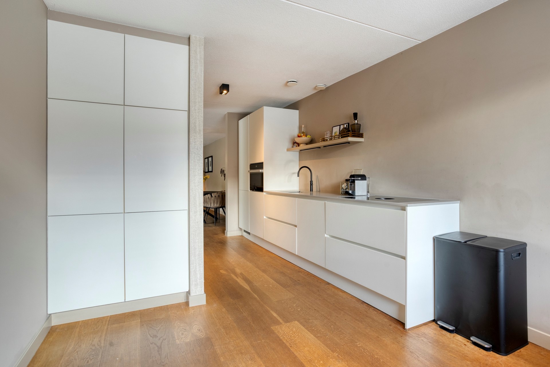 De moderne keuken sluit perfect aan op de woonkamer en is uitgevoerd met een langwerpig aanrecht en diverse inbouwapparatuur. U beschikt over een BORA inductiekookplaat met geïntegreerde afzuiging, een spoelbak met Quooker kraan, een koelkast, vaatwasmachine en een ingebouwde oven. De keuken is gemoderniseerd en verkeert in goede staat, waardoor u hier direct aan de slag kunt met het bereiden van de lekkerste maaltijden. Daarnaast is er voldoende ruimte voor het plaatsen van een eettafel, zodat koken en tafelen hier op natuurlijke wijze samenkomen.