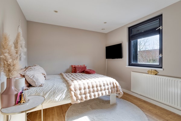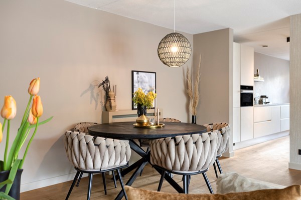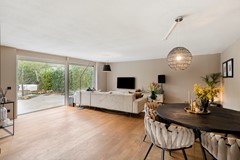 De woonkamer vormt het hart van de begane grond en kenmerkt zich door de open indeling en het overvloedige daglicht dat via de schuifpui naar binnen komt. Hier heeft u alle ruimte om een comfortabele zithoek te creëren en de ruimte in te delen in een sfeervol woon- en eetgedeelte. De schuifdeur naar de tuin versterkt het gevoel van ruimte en zorgt voor een mooie verbinding tussen binnen en buiten. Het is een lichte en veelzijdige leefruimte waar u heerlijk kunt ontspannen of samenkomt met familie en vrienden.