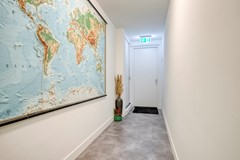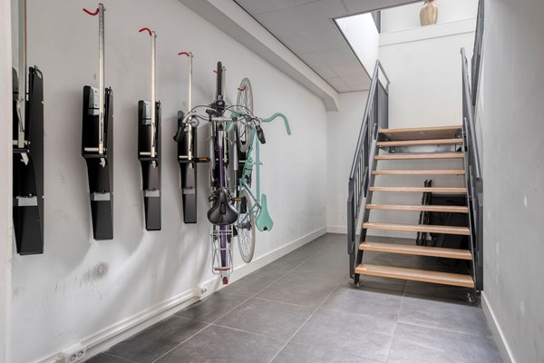 Het complex heeft een nette, gezamenlijke entree met brievenbussen, bellentableau en video-intercom. Via het trappenhuis bereikt u het appartement, en in de onderbouw is een eigen berging aanwezig, ideaal voor fietsen en extra opslag.