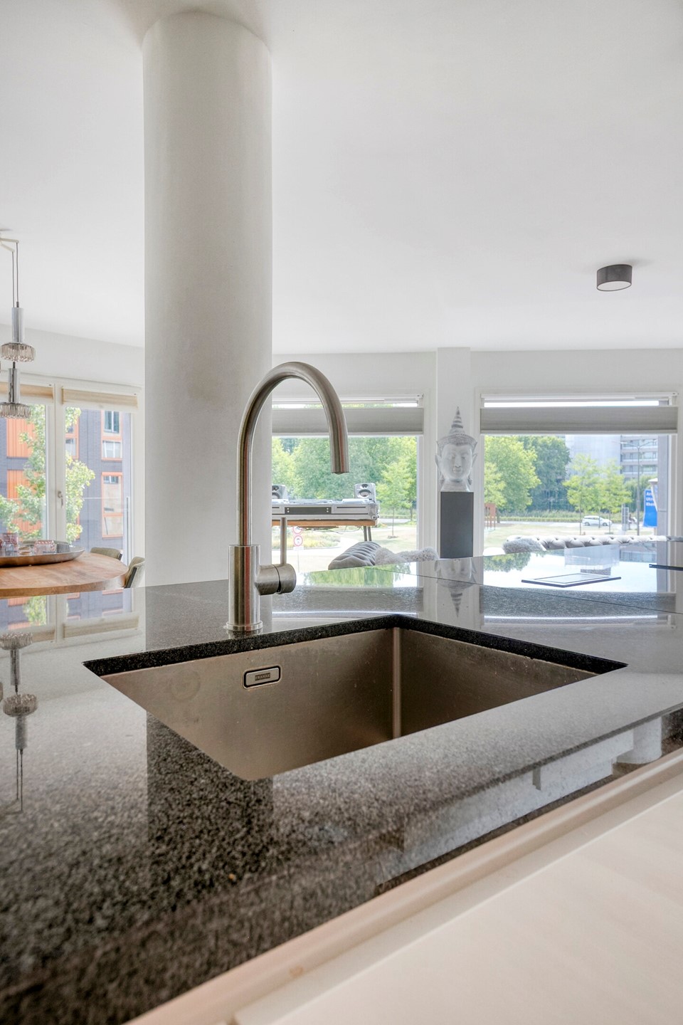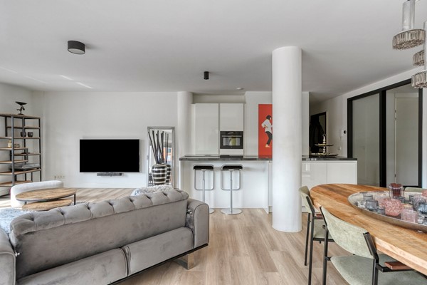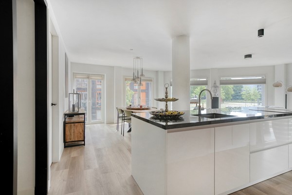 Stapt u dit moderne tweekamerappartement binnen, dan ervaart u direct hoe 88 m² woonoppervlakte optimaal kan worden benut. Het geheel is tot in de puntjes afgewerkt, zodat u zonder zorgen kunt verhuizen. De grote raampartijen zorgen voor een overvloed aan daglicht en geven de woning een open en luchtige uitstraling. De woonkamer vormt samen met de keuken een prachtig geheel; hier vindt u een stijlvol kookeiland met hoogglans fronten, een natuurstenen werkblad en moderne inbouwapparatuur. Ook de slaapkamer is licht en ruim opgezet, en de badkamer sluit naadloos aan bij dit gevoel van comfort met modern sanitair en een strakke afwerking. Het appartement met berging, bevindt zich in een karakteristiek pand, wat charme en uitstraling toevoegt aan het geheel. Dankzij de uitstekende ligging op de rand van het centrum met alle voorzieningen binnen handbereik, combineert u hier stijlvol wonen met praktisch gemak.