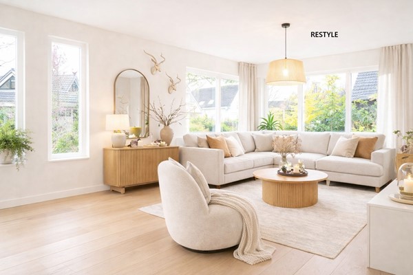 De royale woonkamer aan de voorzijde is heerlijk licht dankzij de grote raampartijen. In 2022 is de begane grond voorzien van strak stucwerk en comfortabele vloerverwarming, wat zorgt voor een moderne uitstraling en optimaal wooncomfort. De ramen zijn voorzien van rolluiken en screens aan de buitenzijde zorgen voor extra verkoeling op warme dagen.