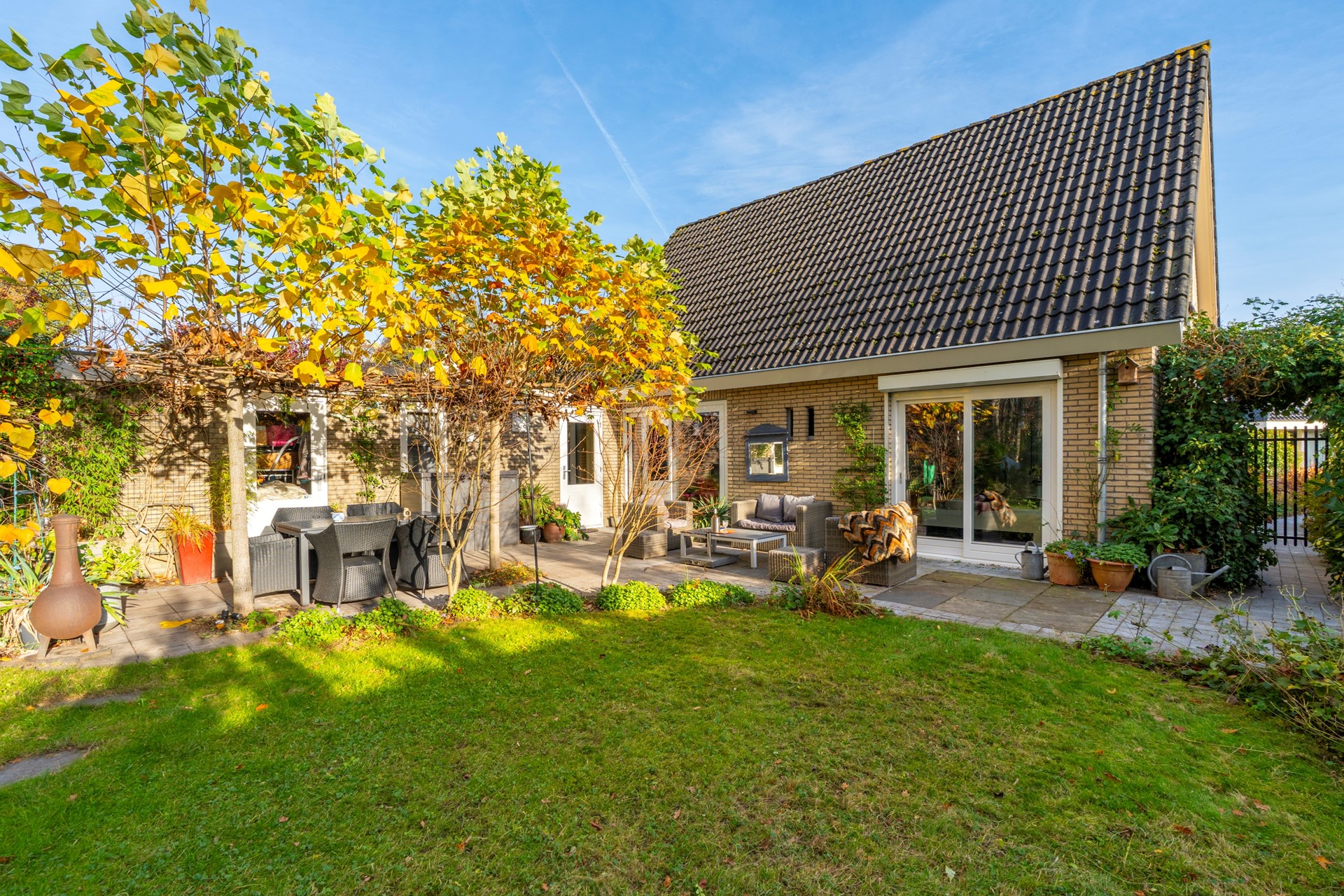 - Voorzieningen: beregeningsysteem in de tuin, screens, rolluiken
