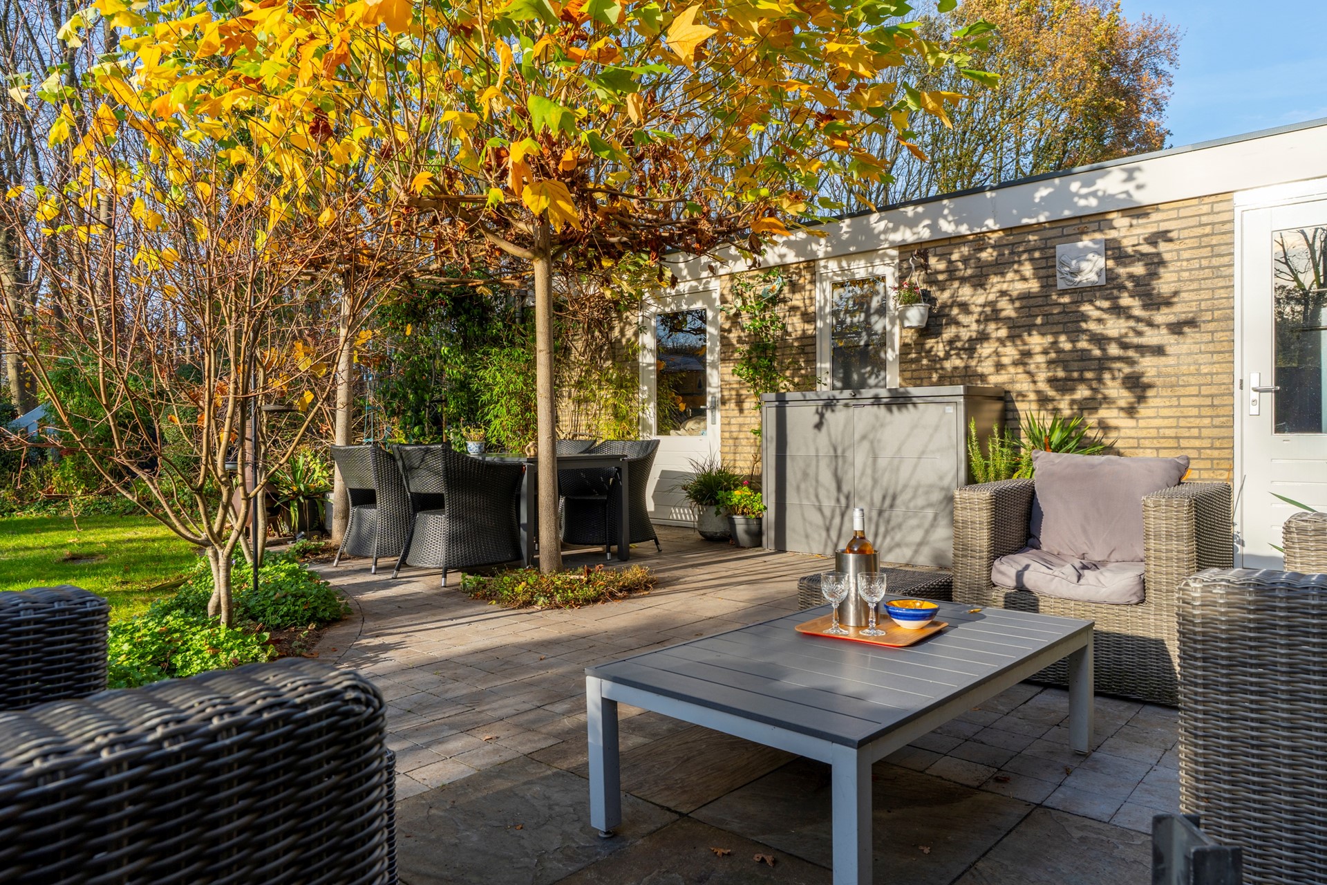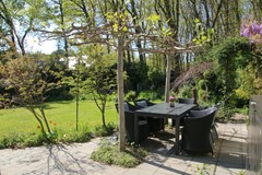 De onder architectuur aangelegde tuin is onderhoudsarm en voorzien van een automatisch beregeningssysteem. De tuin kenmerkt zich door een mooie balans tussen zon en schaduw en biedt optimale privacy. Dankzij de doordachte indeling zijn er meerdere sfeervolle zithoekjes aanwezig, zodat u op elk moment van de dag een fijne plek vindt om te ontspannen.