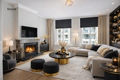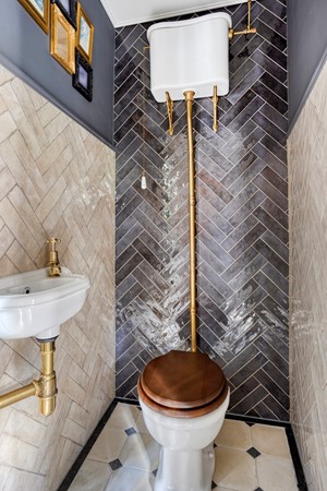 The spacious living room—where the beautiful solid oak herringbone (Hungarian point) floor, tall windows with original shutters, designer custom radiators, and high beamed ceiling immediately catch the eye—perfectly blends modern and classic. The front sitting room is cosy and bright, while the garden-facing dining room also features an original mantel, as does the sitting area. Through the light corridor—past the WC and a storage cupboard with laundry connections—you reach the kitchen. The kitchen itself marries classic and modern, fully equipped with built-in appliances including an induction hob, decorative canopy extractor, oven, and dishwasher. Behind the kitchen is a practical storage room with the fridge–freezer and central heating installation, concealed behind beautiful custom loft doors. A loft ladder provides access to the storage attic, offering plenty of additional space. The entire ground floor is impeccably maintained, finished down to the smallest details, and ready for many years of living and/or working pleasure.