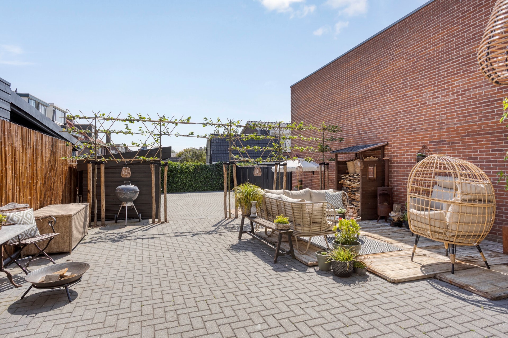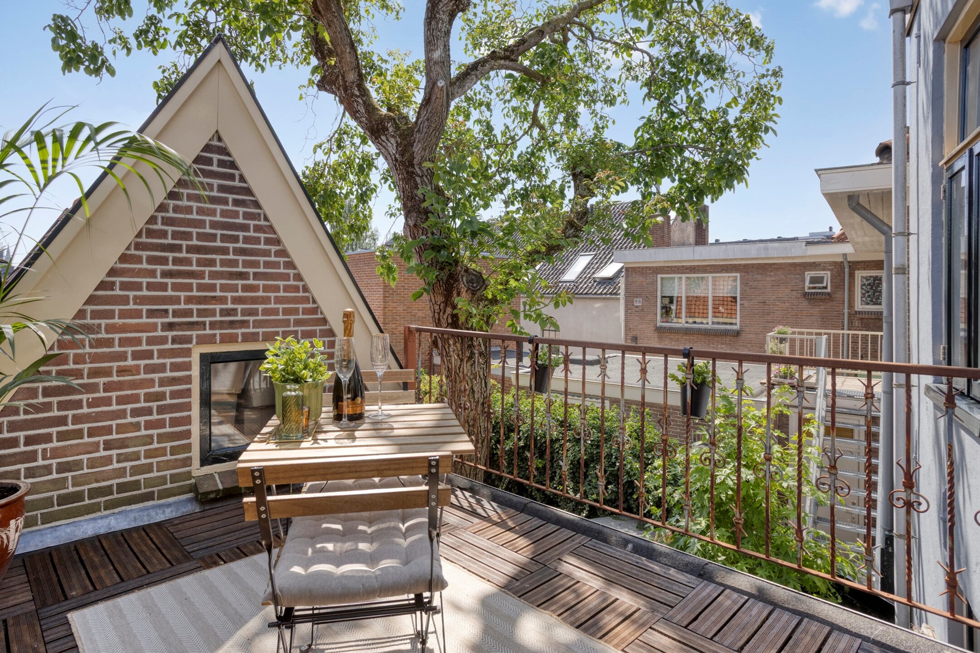 The split-level rear garden with espalier lindens and a classic walnut tree is a true asset—wide, deep, and delightfully secluded. You’ll enjoy complete privacy, sun and shade. It’s a garden to linger in: summer evenings, a morning coffee in the sunshine (with freshly baked cake from your own walnut tree), or drinks with friends—this is your outdoor living room. At the back you’ll also find a storage shed for bikes and garden tools, and a double gate for easy access by car. You can park multiple cars here with ease.