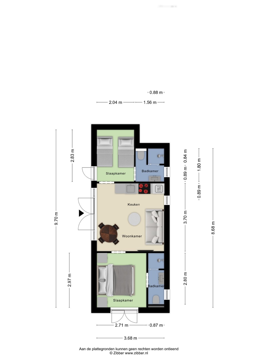 | Aantal kamers | 3 (waarvan 2 slaapkamers) |