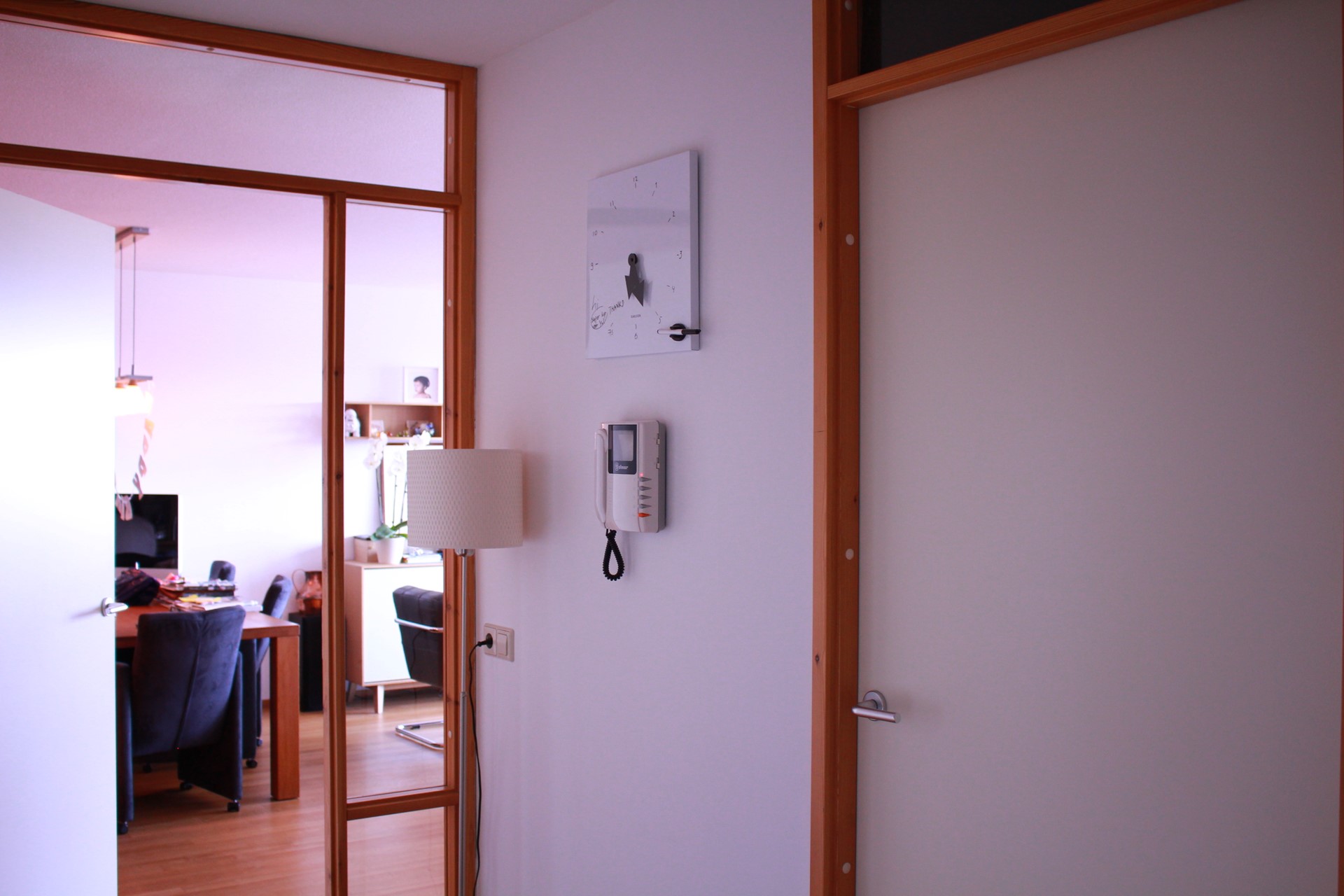 Indeling: Gezamenlijke entree met lift naar de 9e etage (13e verdieping), entree appartement, hal met videofoon, een stookruimte met wasmachine en droger, apart toilet met fonteintje.