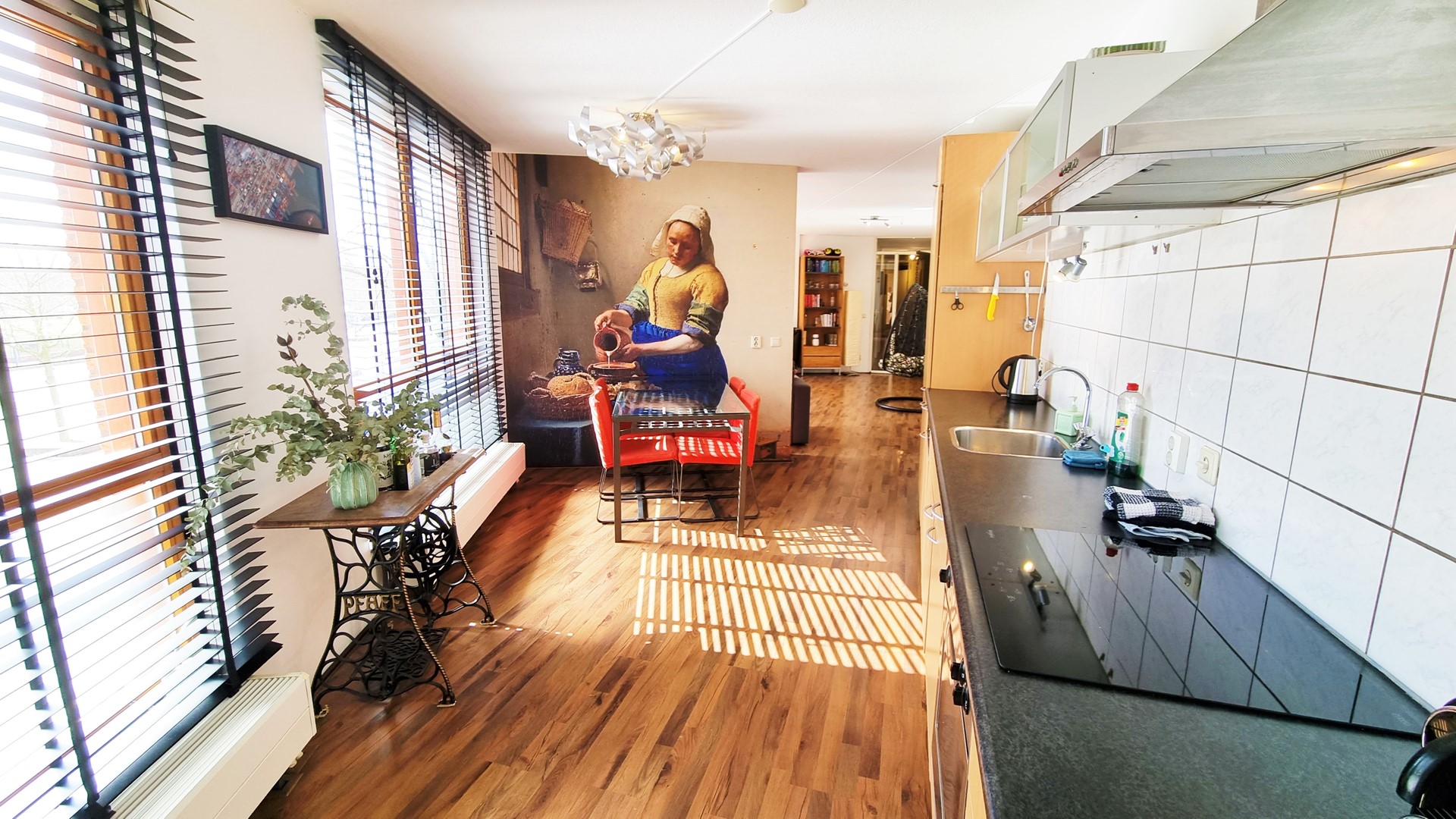 Vanuit de woonkamer is de nieuwe half open keuken te betreden welke evenals de woonkamer geniet van grote raampartijen. Ook is vanuit de keuken het fijne en zonnige balkon te bereiken.
