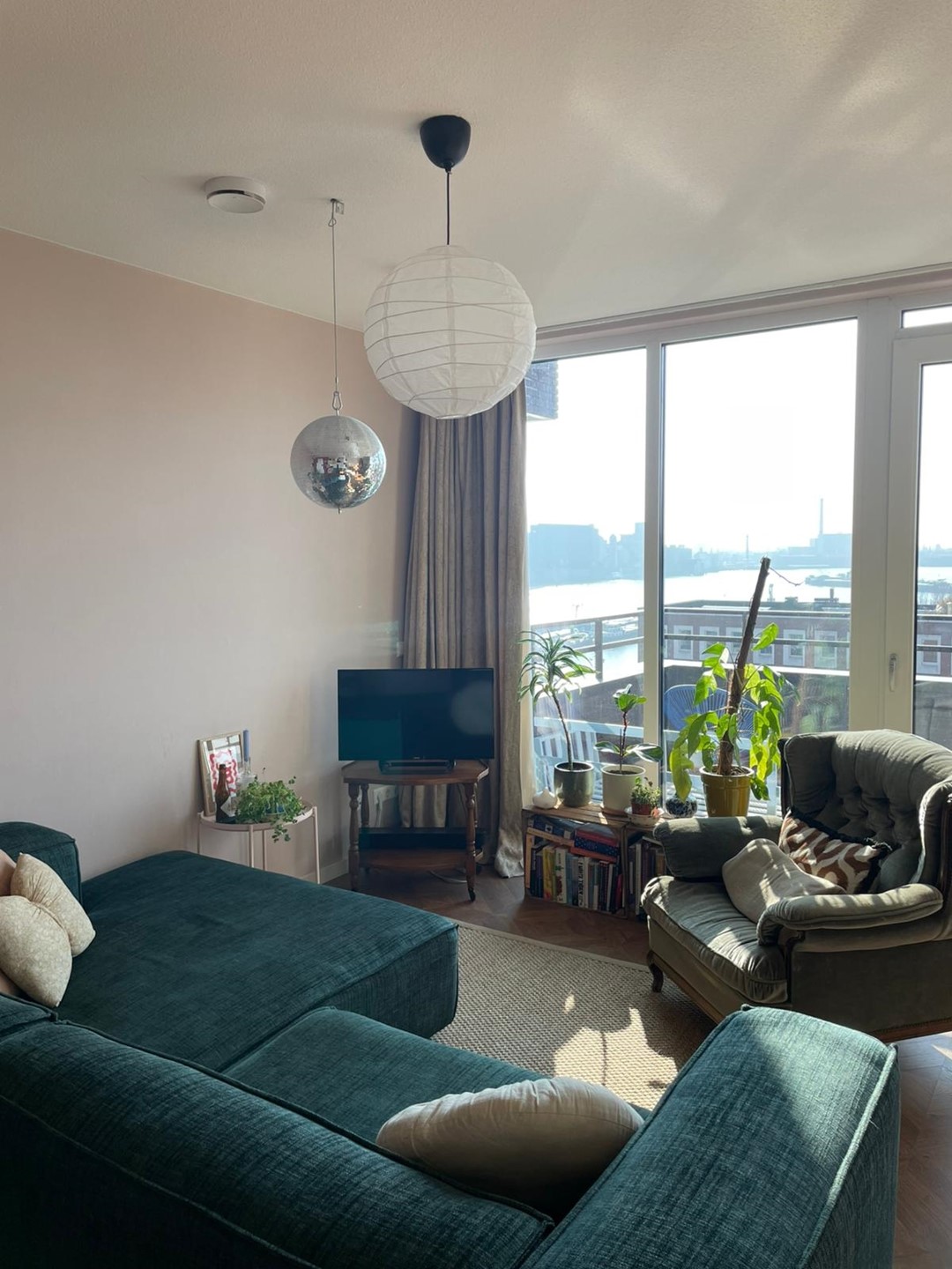 Ruime en lichte woonkamer met directe toegang tot een fantastisch balkon met uitzicht over de Maashaven