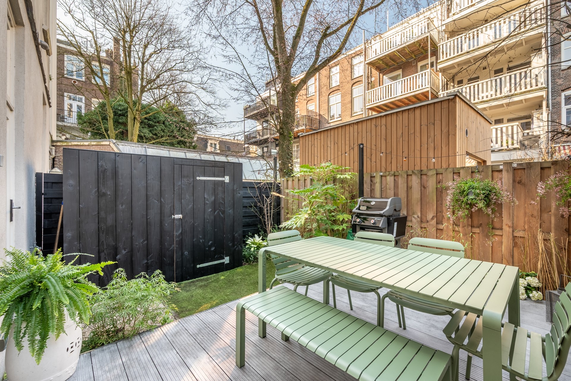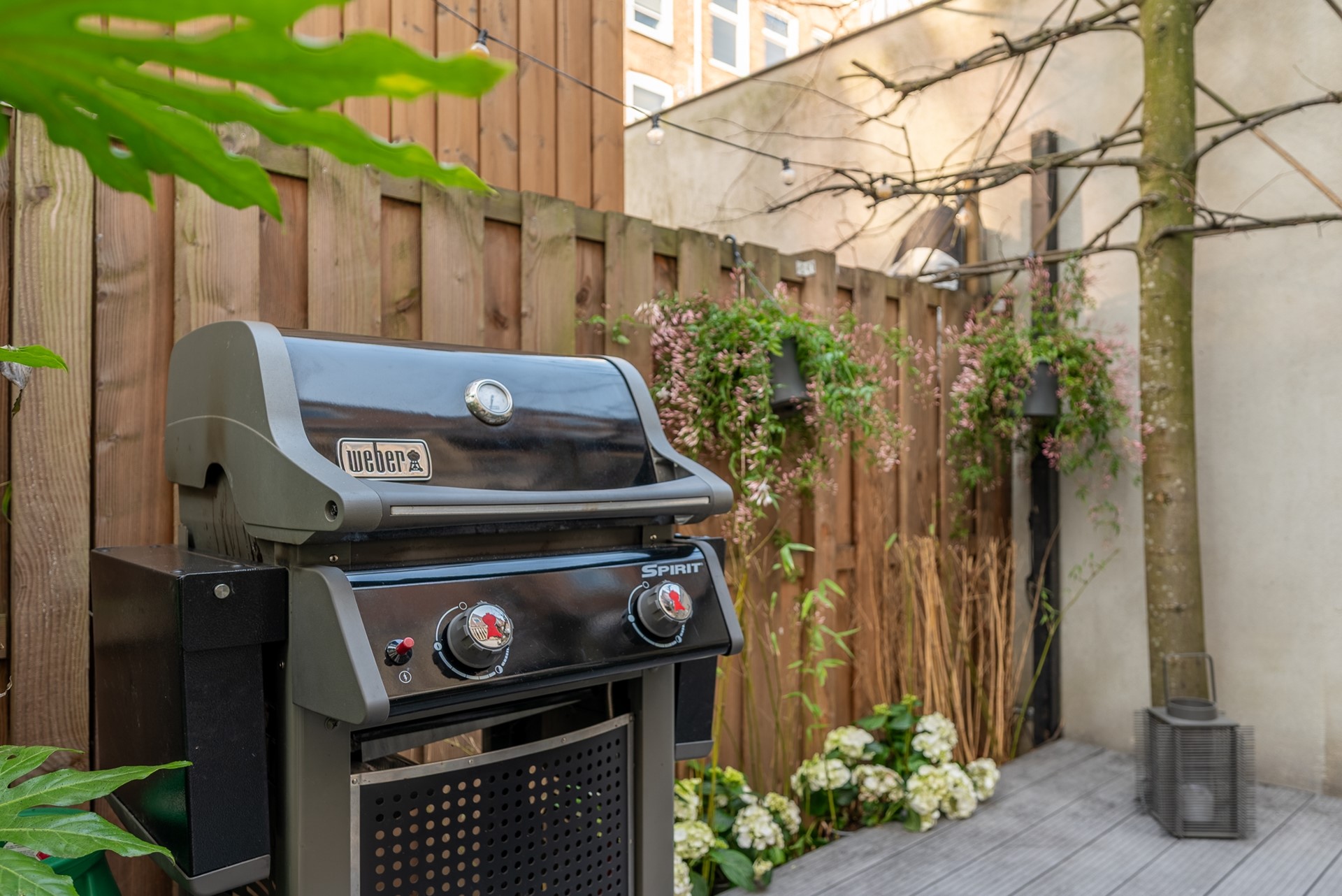De achtertuin vormt een heerlijk verlengstuk van de woning. De tuin biedt voldoende ruimte voor een eettafel en een zitgedeelte en is een ideale plek om te ontspannen of te genieten van lange zomeravonden met een BBQ. Daarnaast is er een externe bergruimte in de tuin aanwezig.