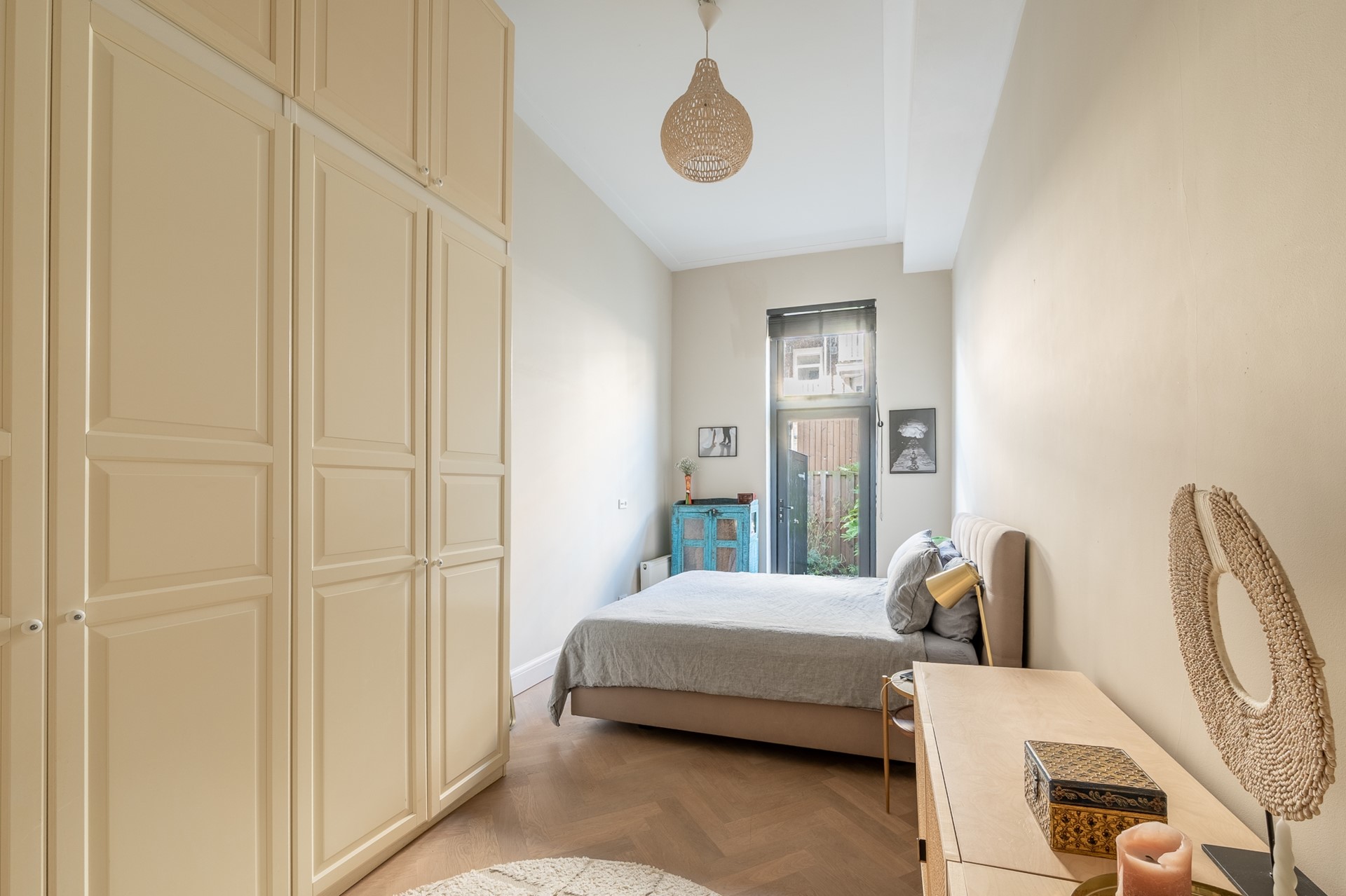 Stijlvol wonen met tuin in het hart van Amsterdam-Oost, op een locatie waar zelden iets beschikbaar komt. Dit karaktervolle en hoogwaardig afgewerkte benedenhuis combineert klassieke charme met modern wooncomfort en beschikt over een royale woonverdieping, een luxe open woonkeuken, twee ruime slaapkamers op de begane grond én een veelzijdig souterrain met extra slaap-/werkruimte en een tweede badkamer. De woning kenmerkt zich door een fraaie afwerking met een prachtige visgraatvloer, hoge plafonds en een mooie zichtlijn door de leefruimte.